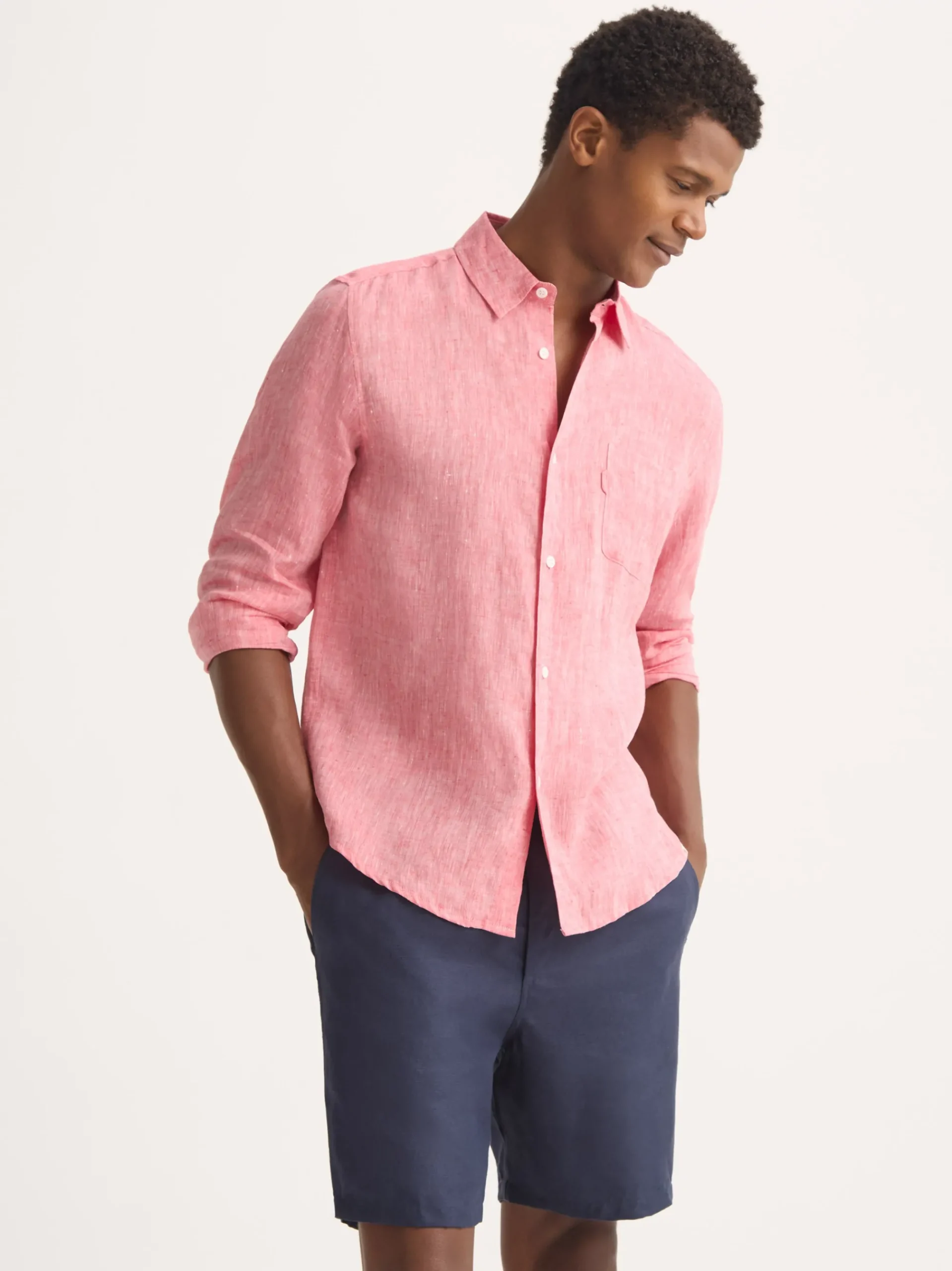 We have developed a mid-weight, beautifully soft and breathable pure linen that will keep you cool and comfortable in even the hottest of conditions. This made in Italy fabric is finished by being piece-dyed before construction for a deep pure navy.