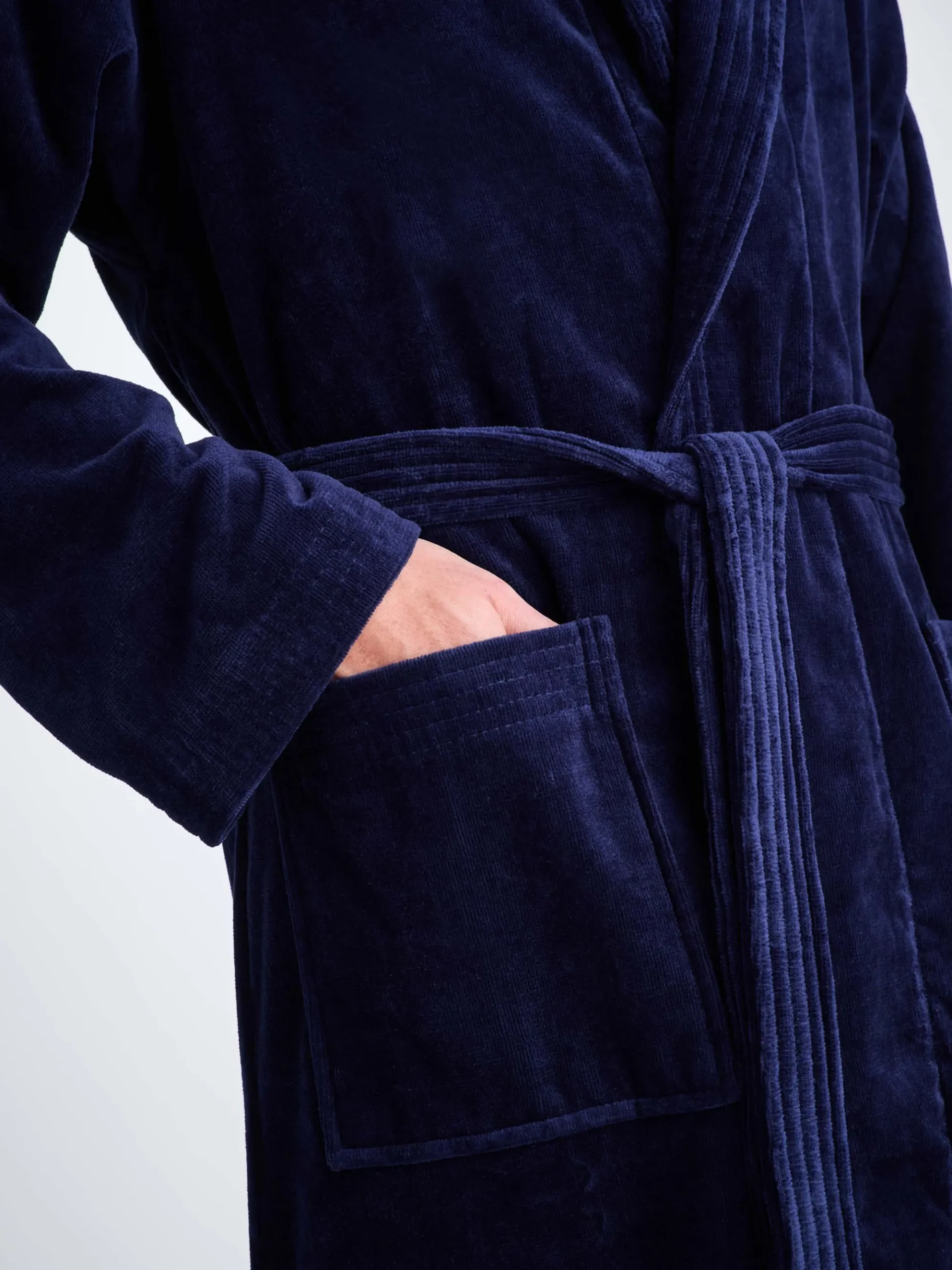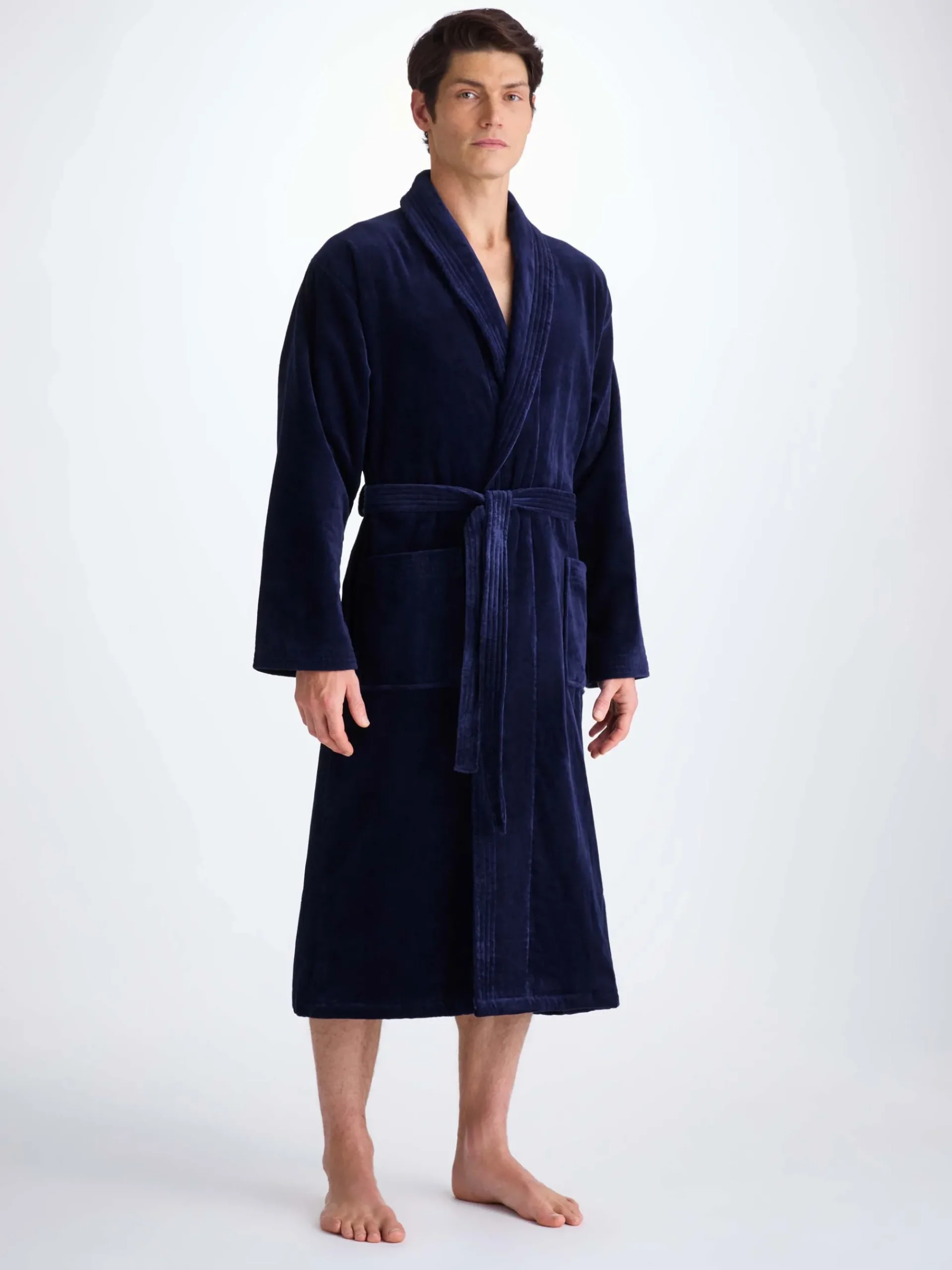 Our Triton bathrobe is a customer favourite, it features a classic shawl collar and two side pockets for practicality while around the house. It’s fastened with a fabric tie belt for the perfect fit.