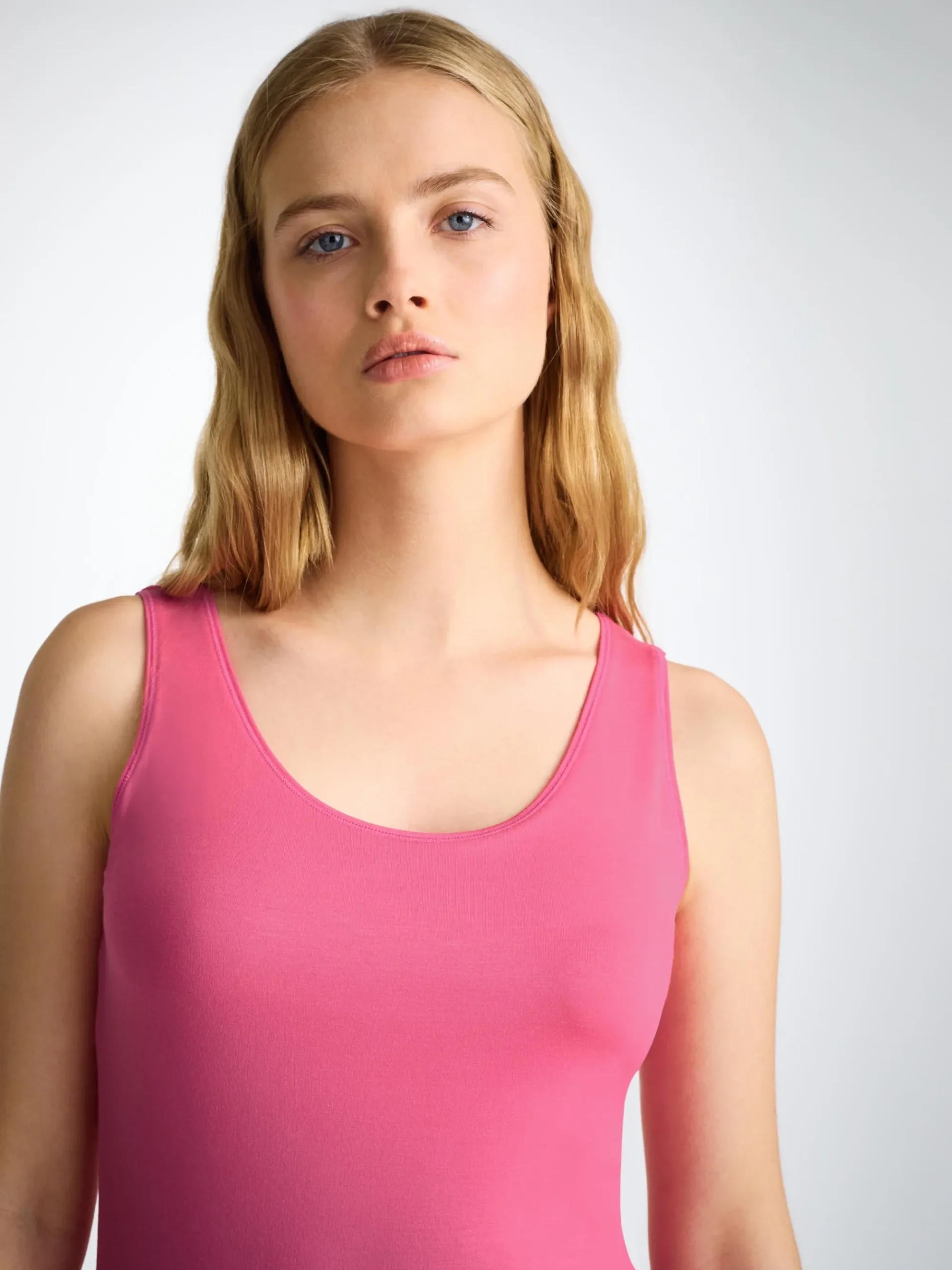 The luxurious finesse of this beautiful fabric is complemented by a scooped neck with soft fabric binding and wide straps for extra comfort. The inner support panel gives this vest a superior fit, allowing it to be worn as a base layer or on its own.