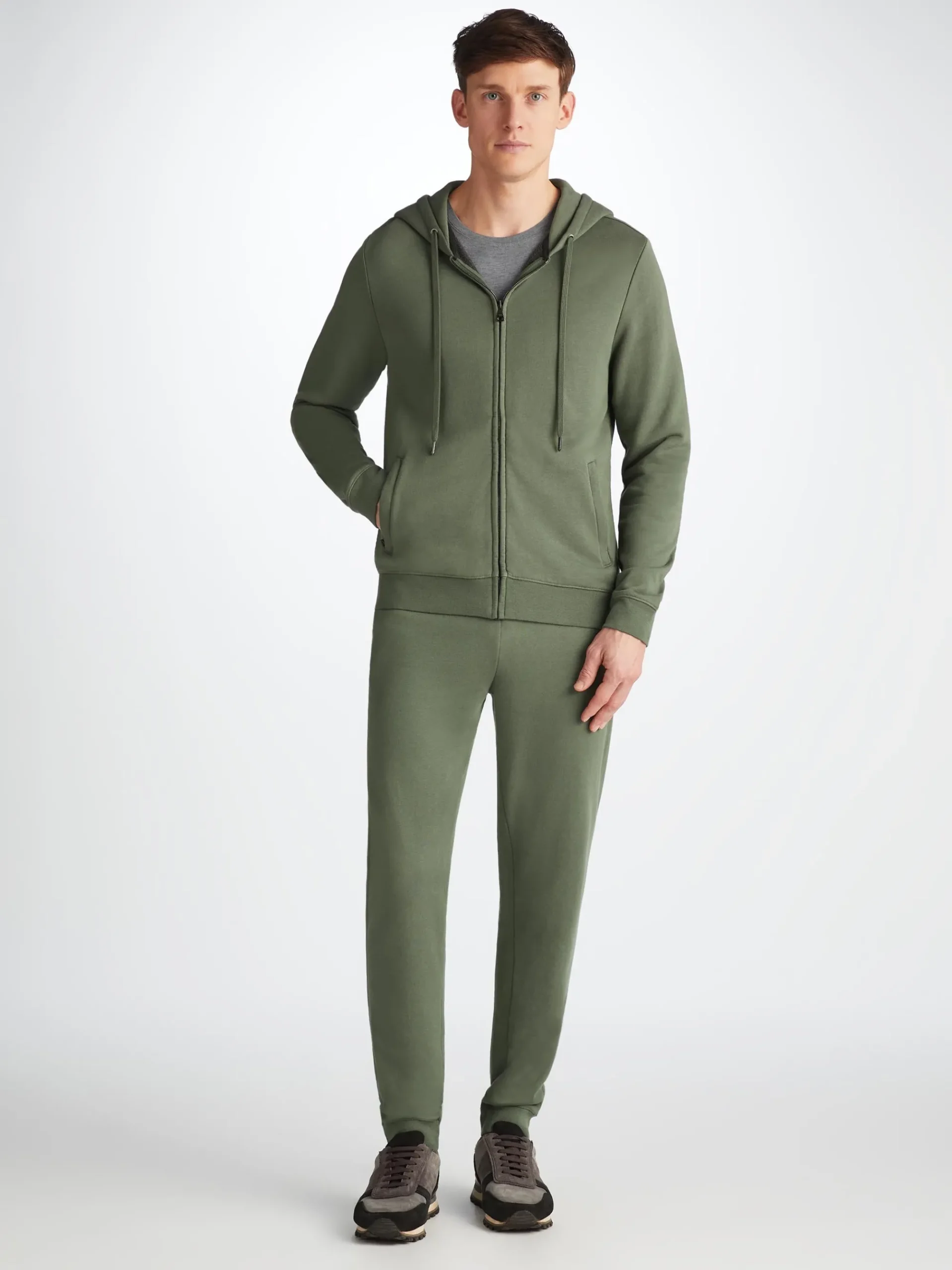 Our Quinn hoodie in soft green is stylish, yet practical. Featuring zipped front pockets with welts and with ribbed cuffs and neck trim, this hoodie is designed to hold its shape wash after wash.