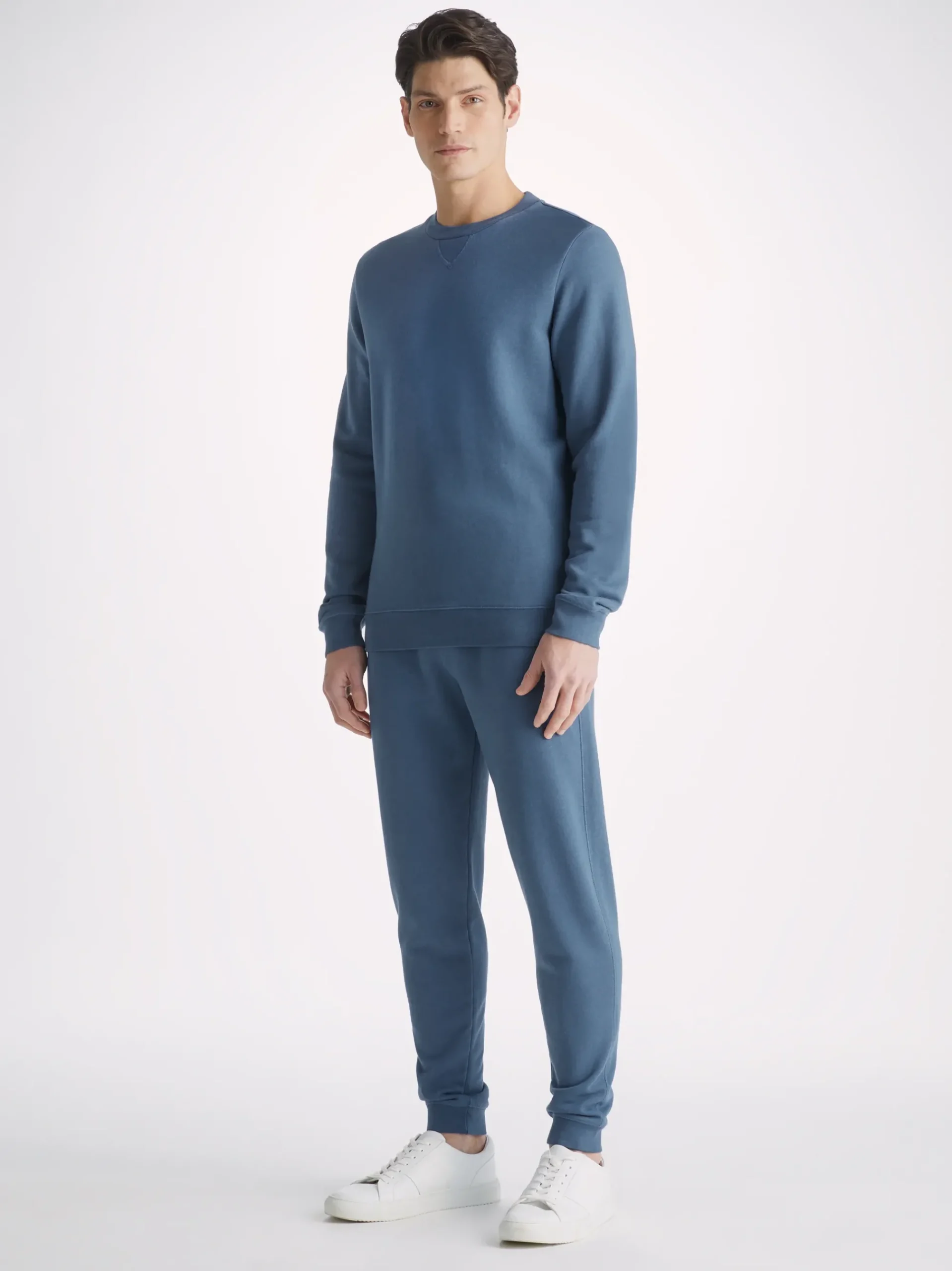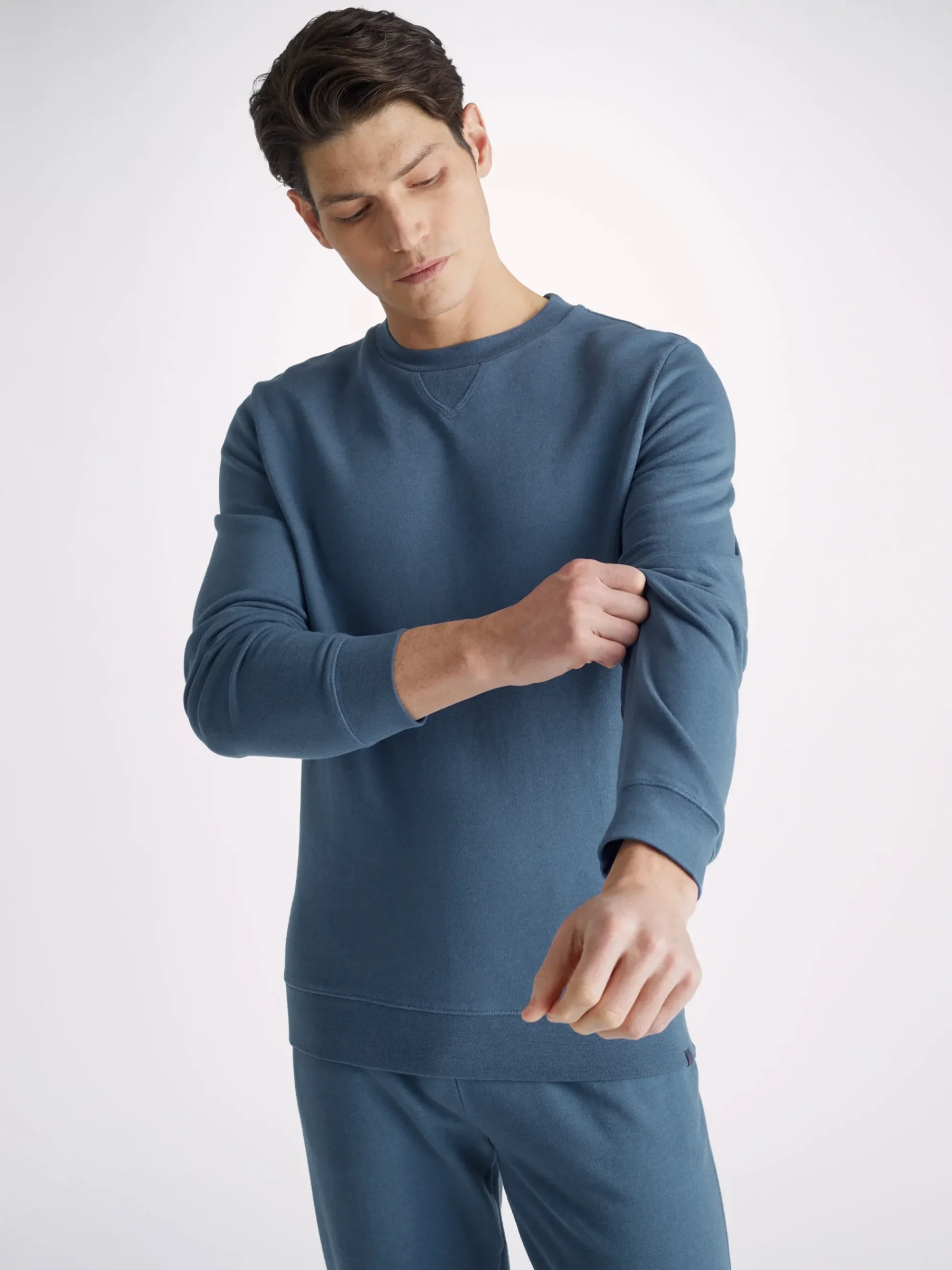 The Quinn fabric combines all the key qualities of our cotton and micro modal; it’s durable and has great colour retention, meaning it can withstand long-lasting wear and this denim blue colour won’t fade. It’s thermoregulating, making it perfect for warm days or cosy evenings in and it’s breathable, so it’s perfect for exercise. But perhaps most importantly, it’s forever soft, seriously – you won’t believe the quality.