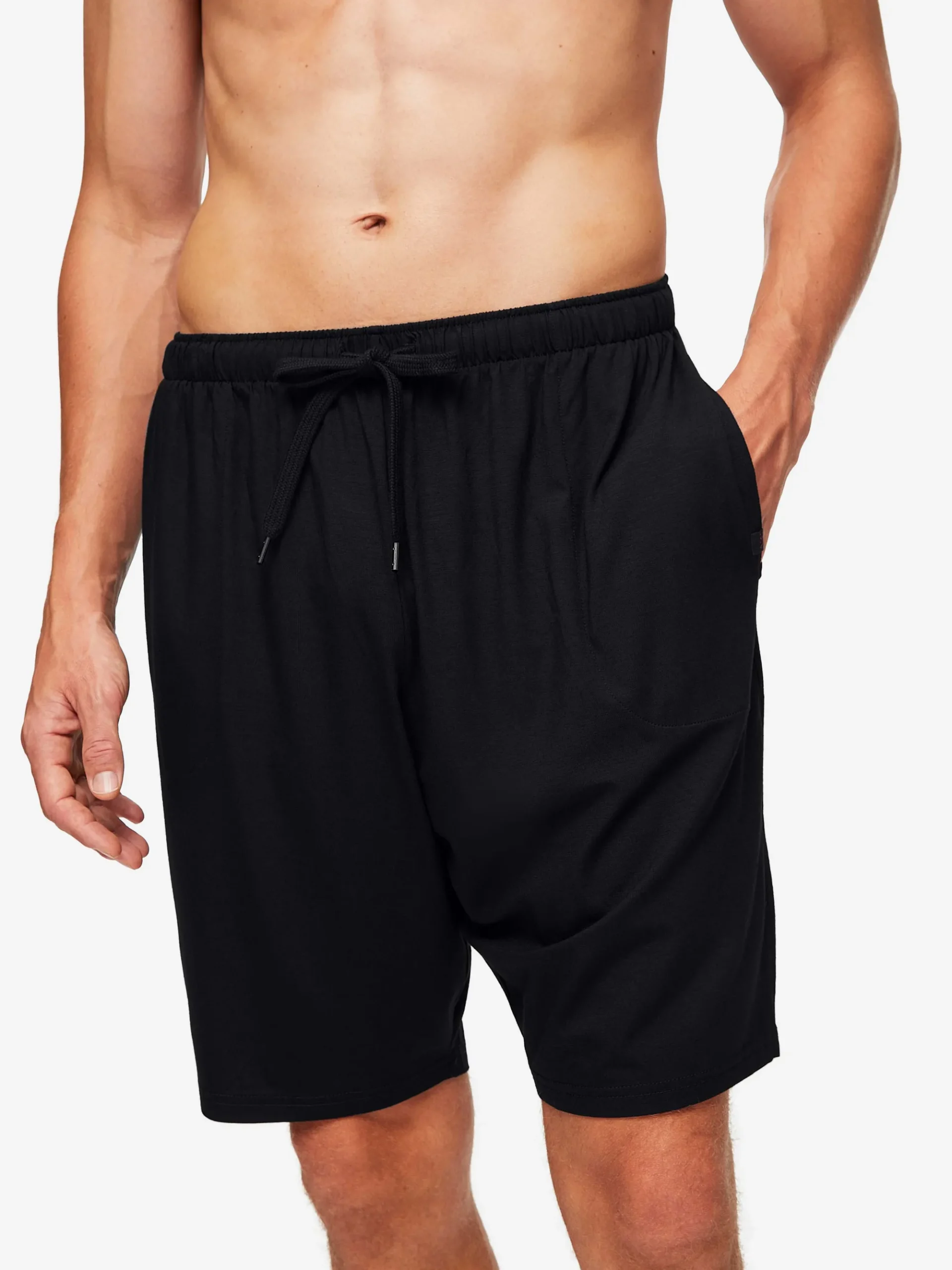 Featuring a combined elastic and tie waistband, our Basel black jersey lounge shorts also feature two front side pockets and a rear back pocket to keep your phone and essentials close while you’re lounging. Both comfortable and stylish, we’ve elevated this loungewear short into a luxury essential for the modern man.
