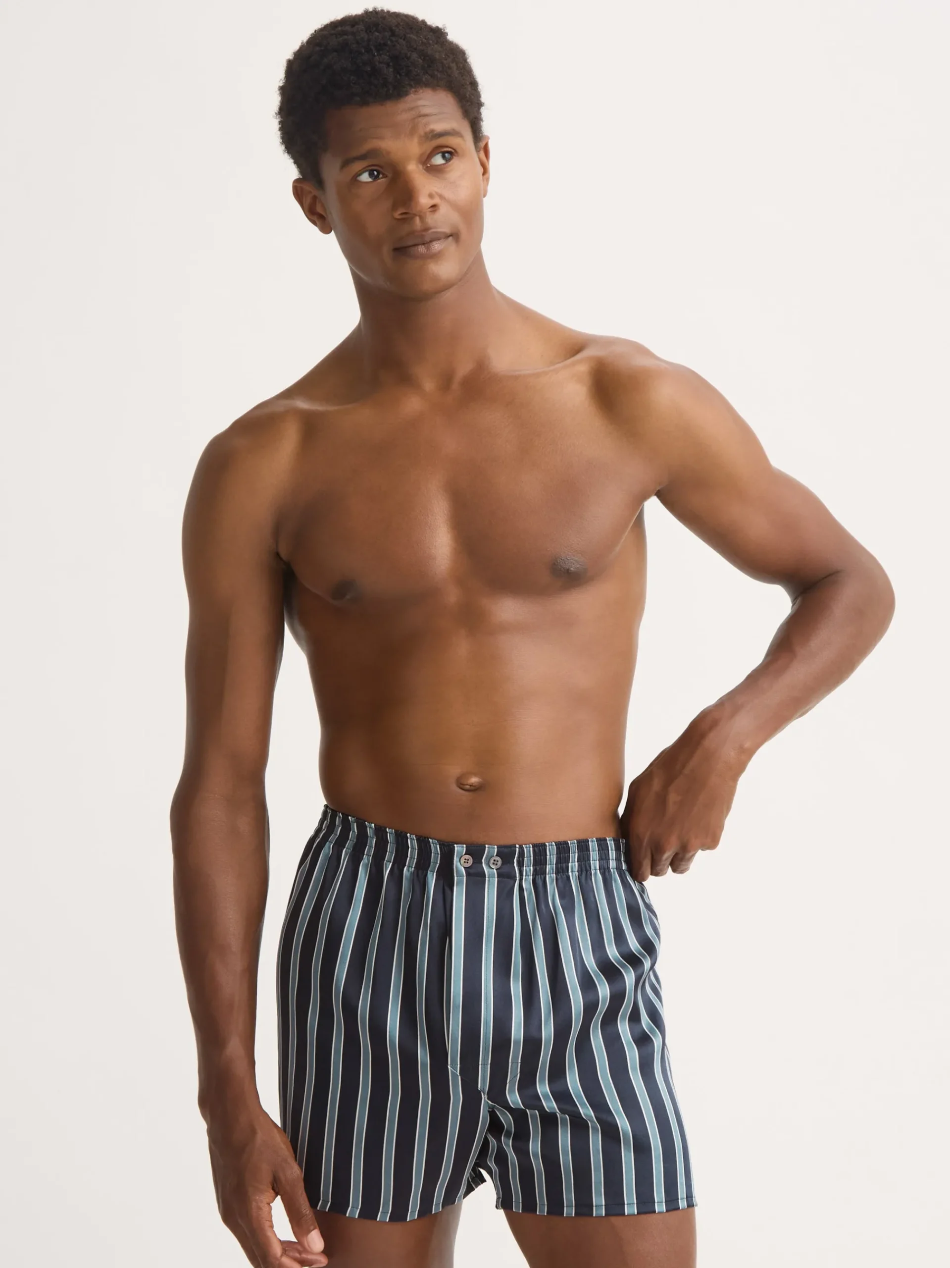 Crafted from our exclusive seasonal silk stripe, these men’s boxer shorts feature classic navy and blue tones for a refined menswear look. Digitally printed in Italy on the finest mulberry silk, the fabric has a smooth silk finish that feels as indulgent as it looks.