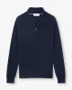 Knit from pure cashmere, this navy half-zip sweater fits closely to the frame, keeping you warm and cosy. The top features a carbon zip-puller that is contoured to your natural fingertip curve for a quick and easy closure should it get colder.