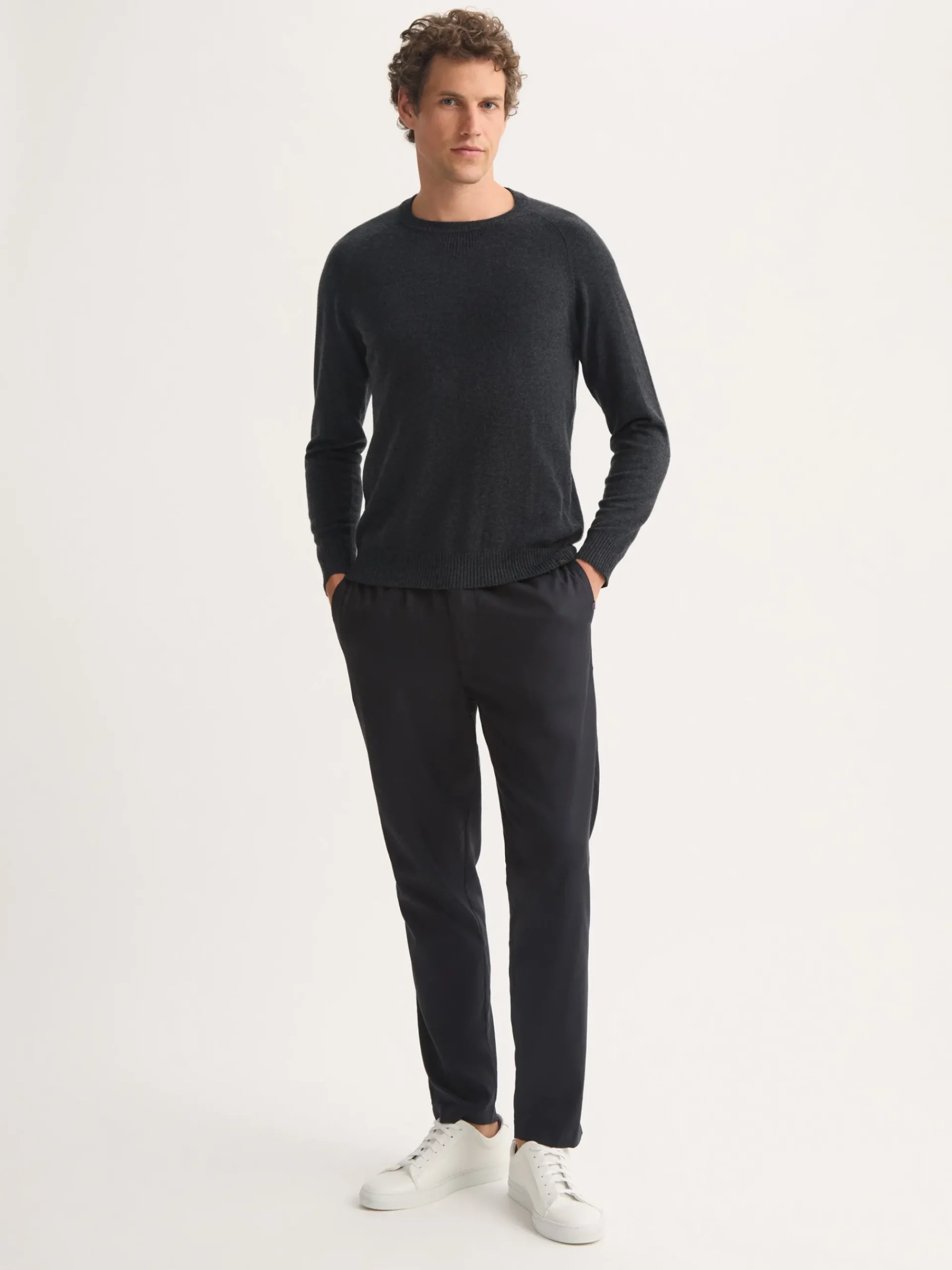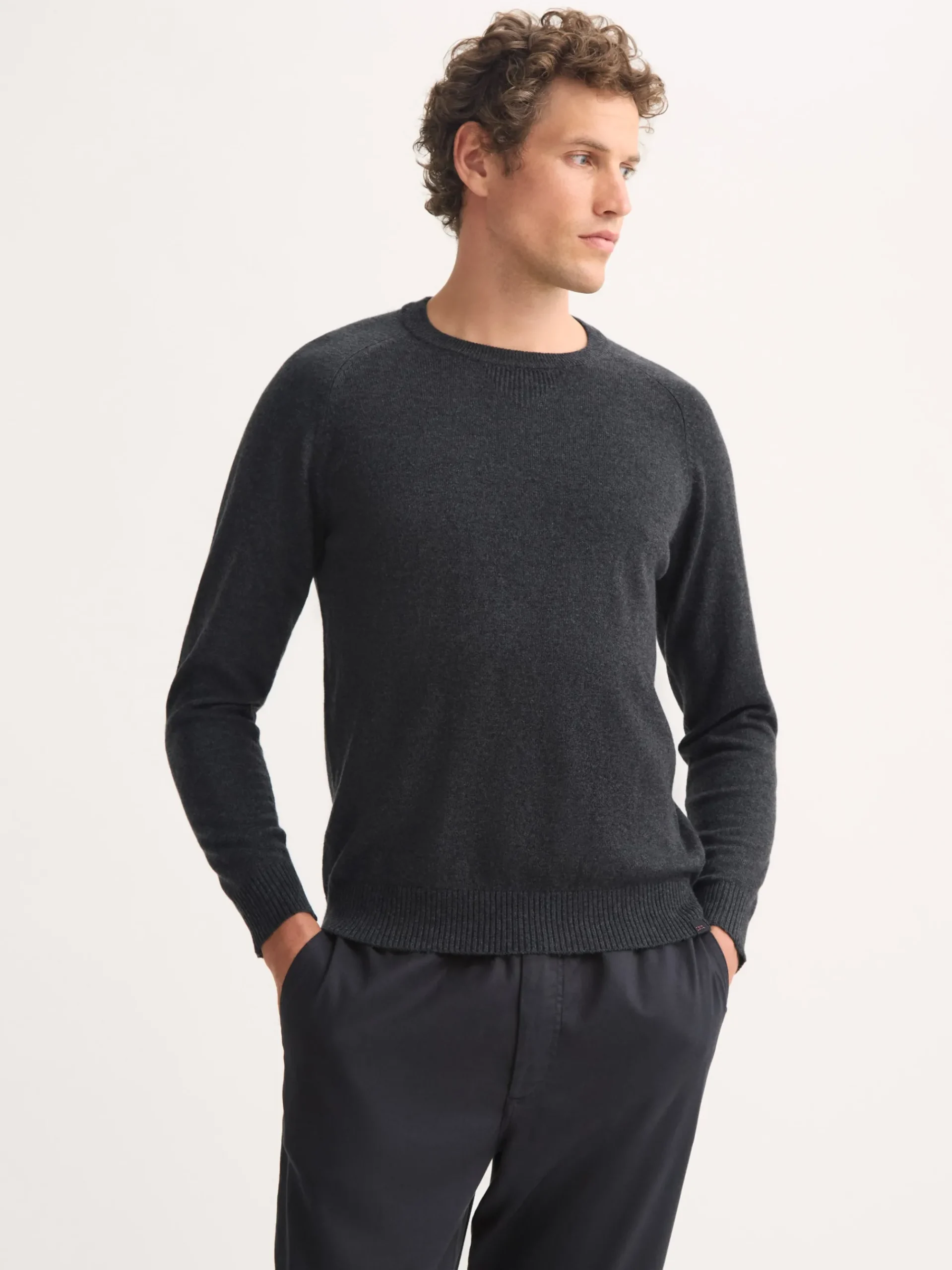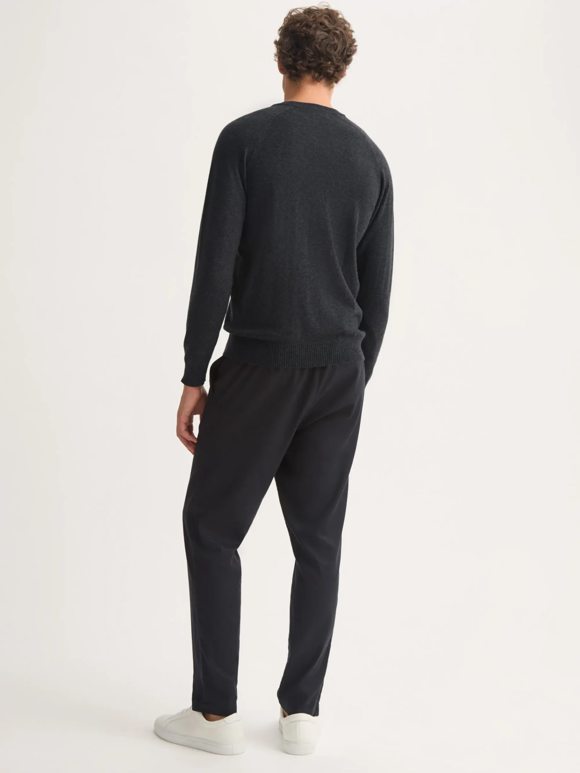 This cashmere charcoal sweater has been designed with ribbed cuffs, hem and collar, as well as raglan sleeves for the perfect fit. Contrast internal ribbing and an integrated ‘V’ detail have been added for a refined finish.