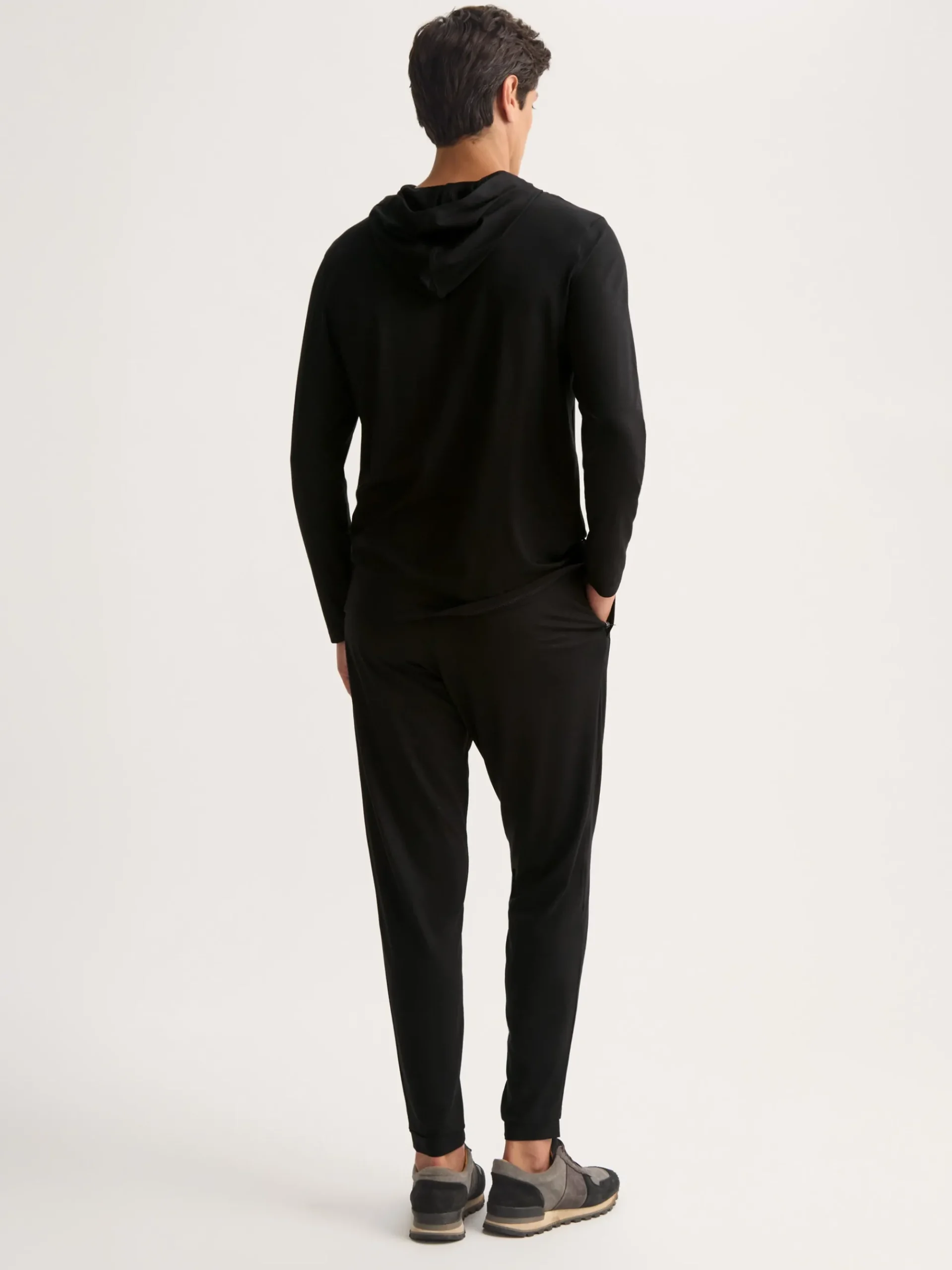 To complement the superior softness of our signature Basel fabric, we chose a sleek, pocketless design that is perfect for layering and has a smooth, bulk-free finish. The nature of Basel’s anti-crease and anti-static properties make this the ideal hoodie for packing and travelling in. Glorious comfort.