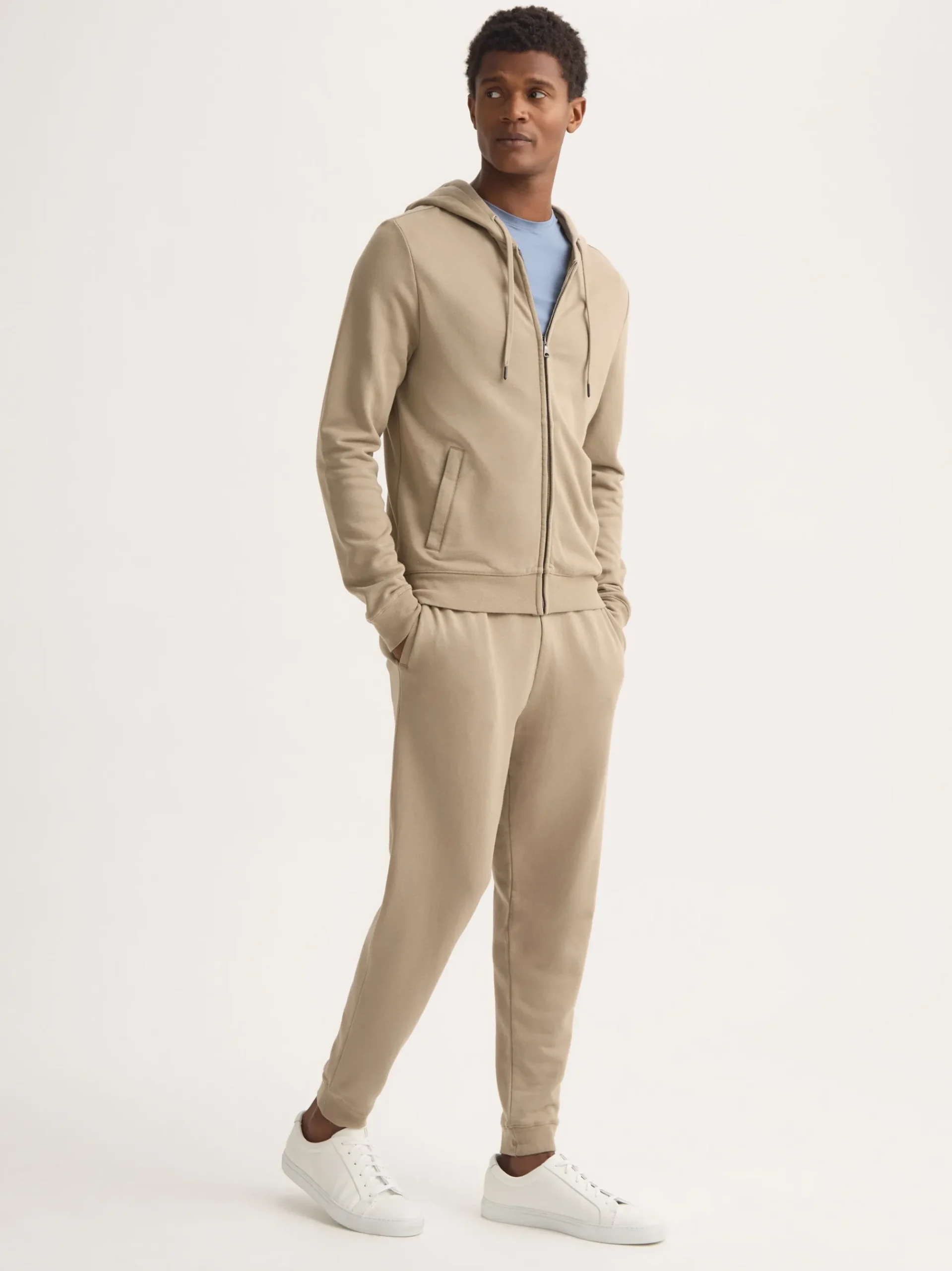 Stylish yet practical, the Quinn Hoodie in taupe is designed for comfort that lasts. Featuring welted zipped front pockets and ribbed cuffs, hem and neck trim, this hoodie holds its shape wash after wash while offering a relaxed, modern fit.