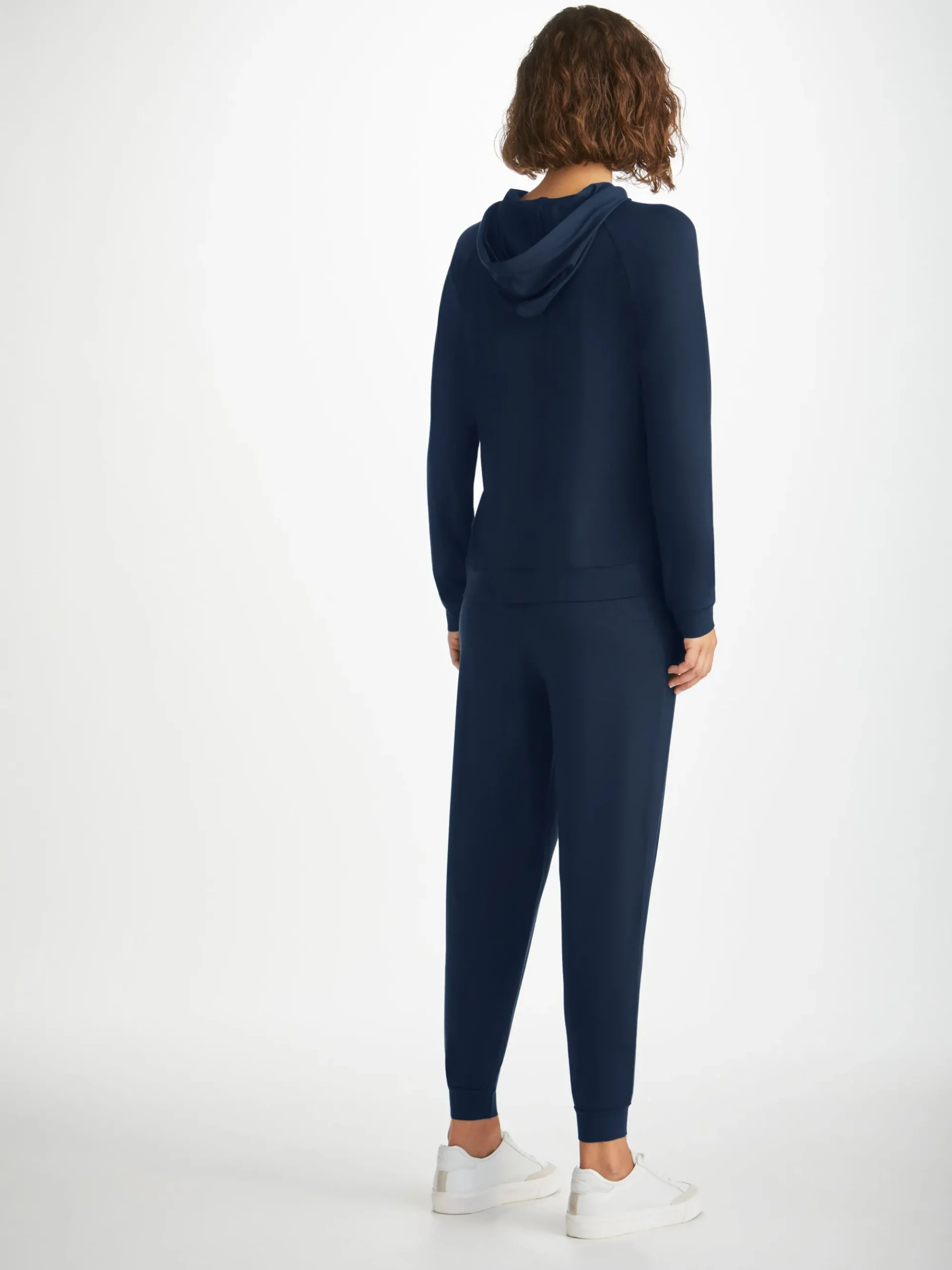 Our Basel fabric in navy has to be touched to be believed. It offers long-lasting softness and doesn’t pill, making it able to withstand countless days of lounging.
