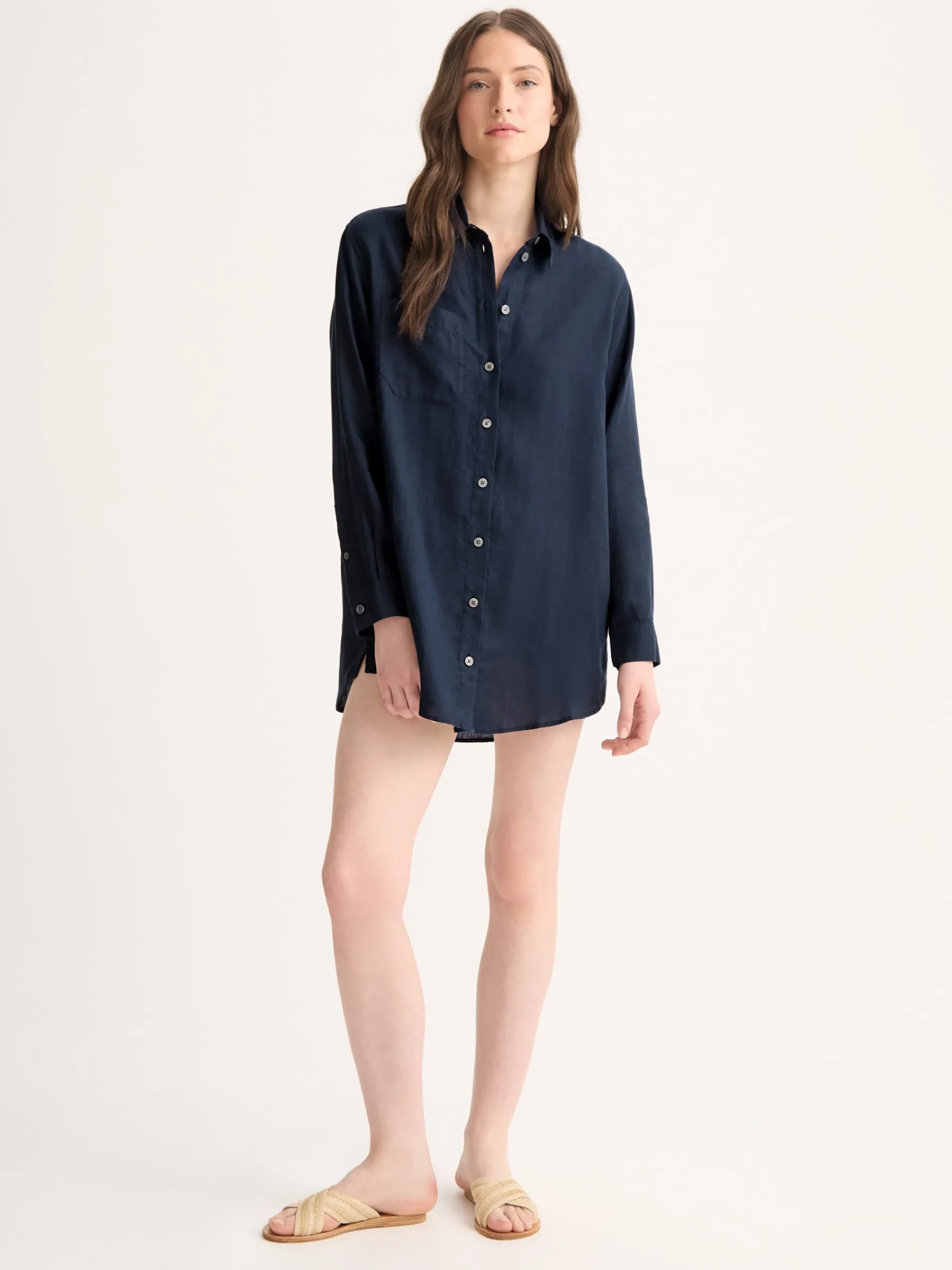 The Sicily shirt features a curved back yoke with a box-pleat for comfort and a curved hem with side vents for ease of movement. We’ve used the classic styling of a button-through front and cuffs, a 2-piece collar and for a modern look, the shirt is designed for an oversized fit for effortless summer chic.