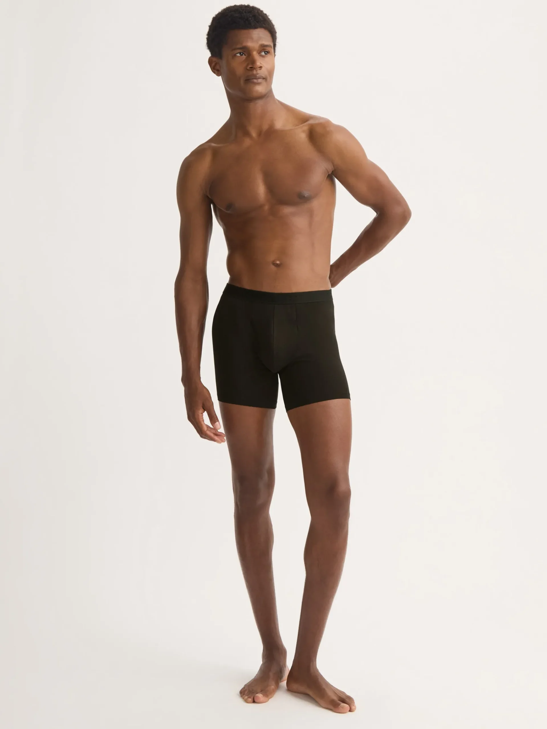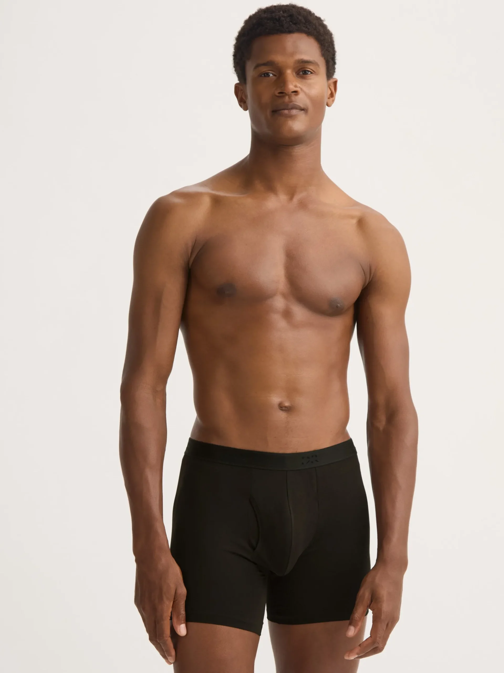 Our Jack trunks are cut for a streamlined, classic look with a fitted shape, classic open fly front and a longer leg. A fabric-covered waistband provides gentle skin contact.