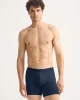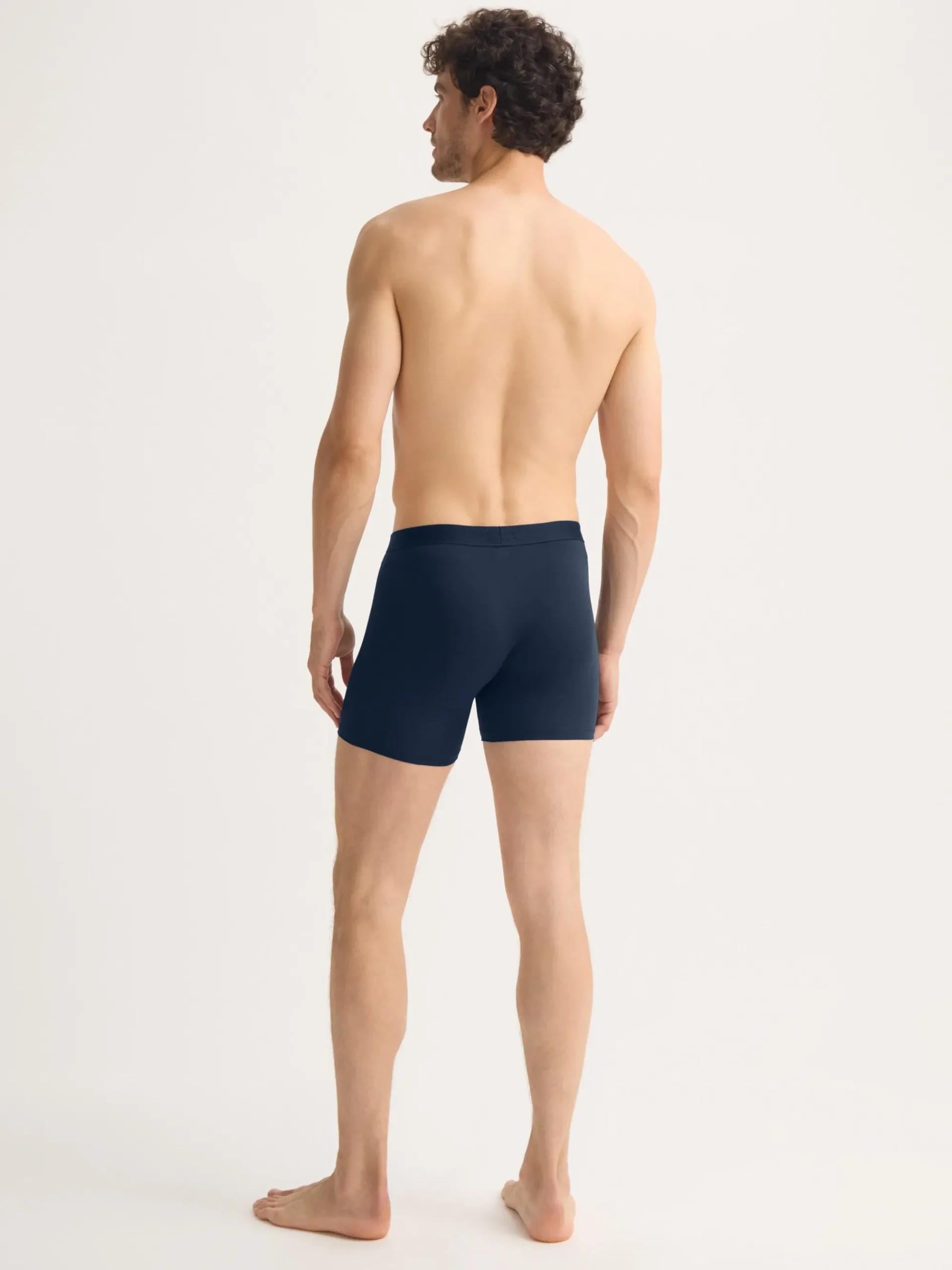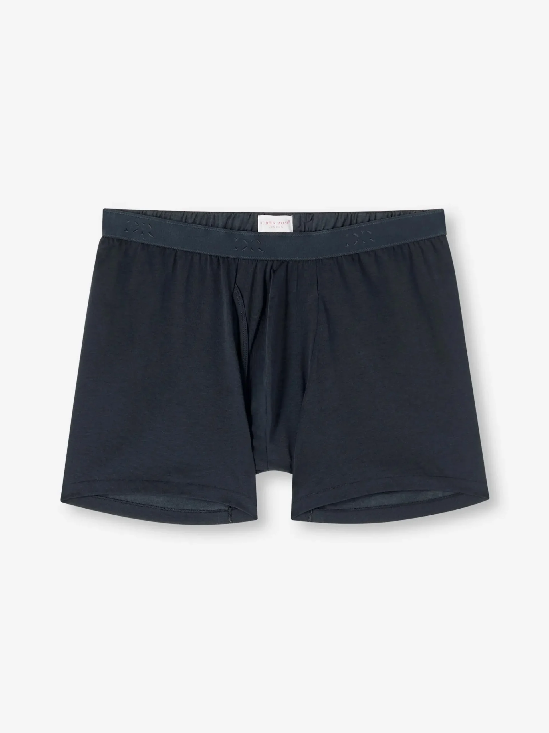 Our Jack trunks in navy blue are cut for a streamlined, classic look with a fitted shape, classic open fly front and a longer leg. A fabric-covered waistband provides gentle skin contact.