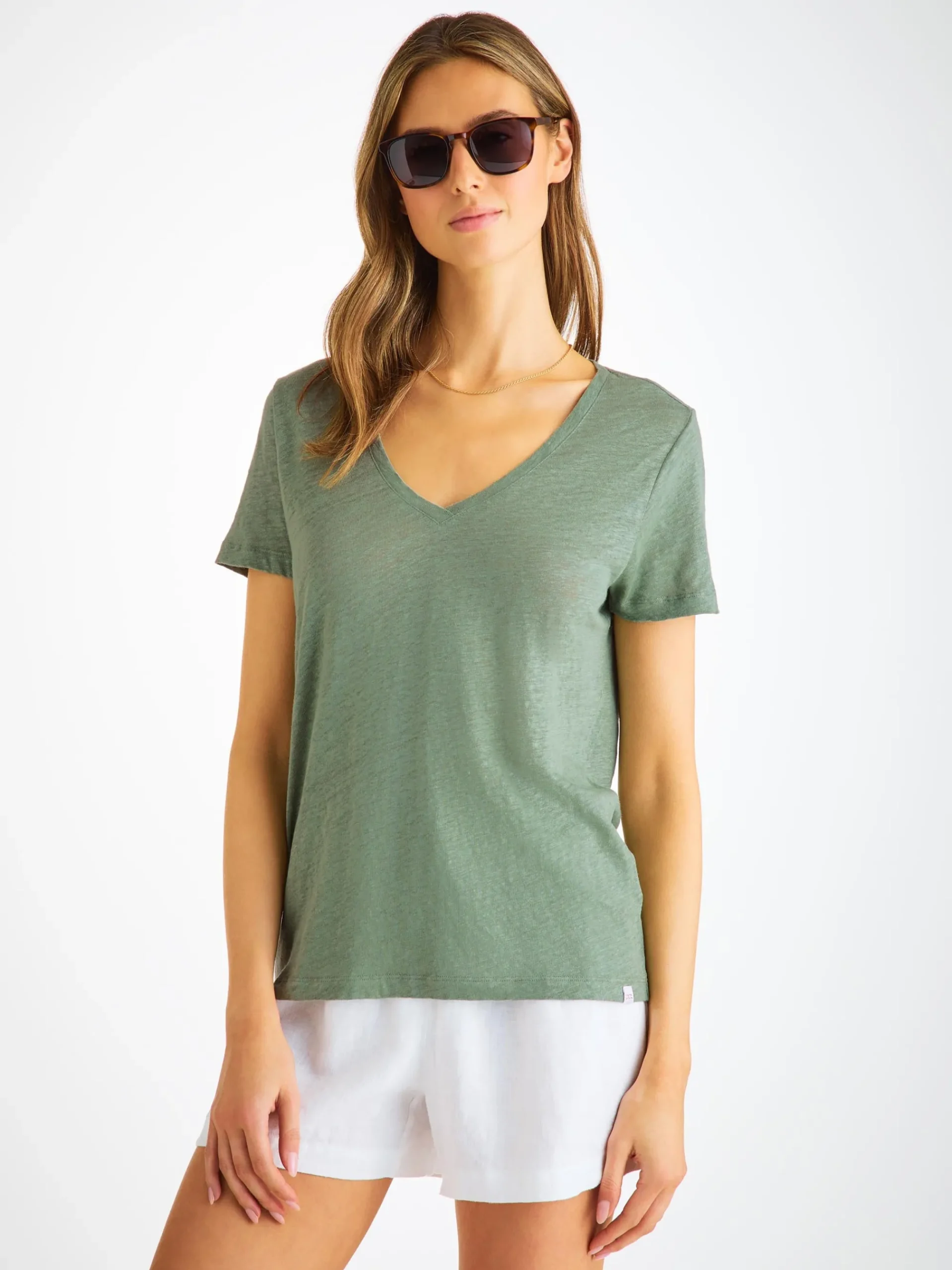 Our women’s Jordan v-neck t-shirt needs to be touched to be believed. Jordan is an exceptionally soft pure linen jersey; this is like no other linen shirt you own. A fabric that typically comes with that rough feeling, our Jordan is cut from a super-soft and lightweight pure linen, knitted with a very fine yarn and finished with a soft wash.