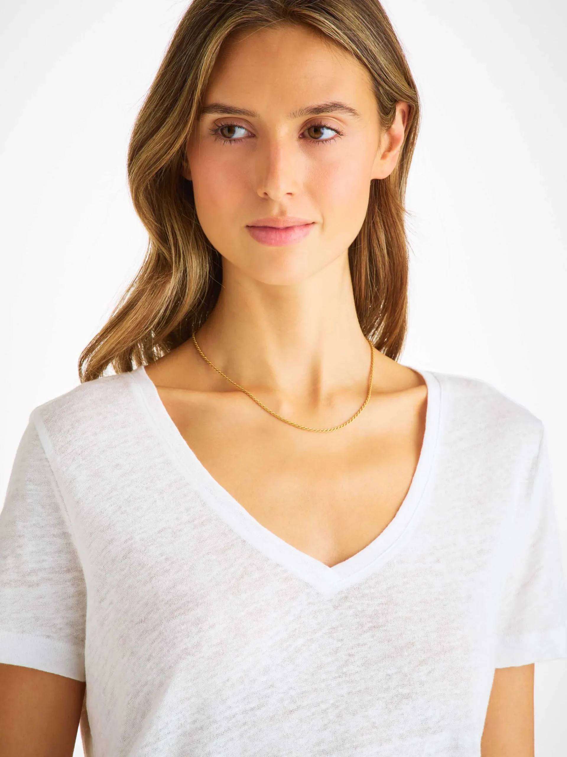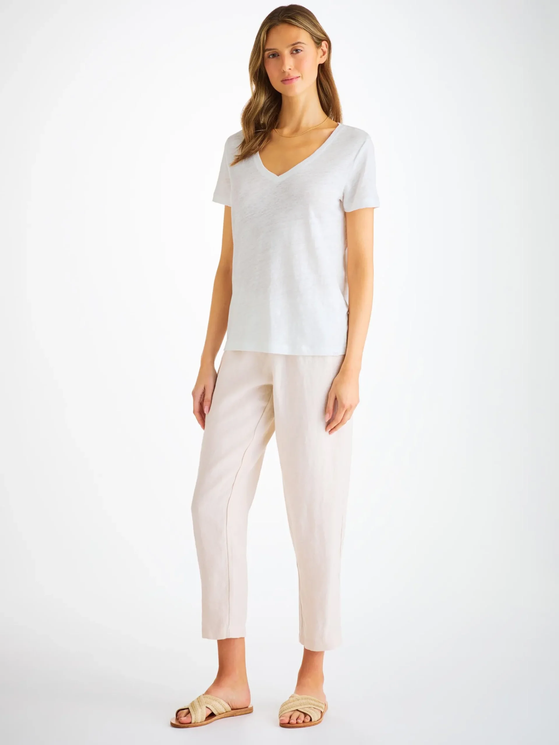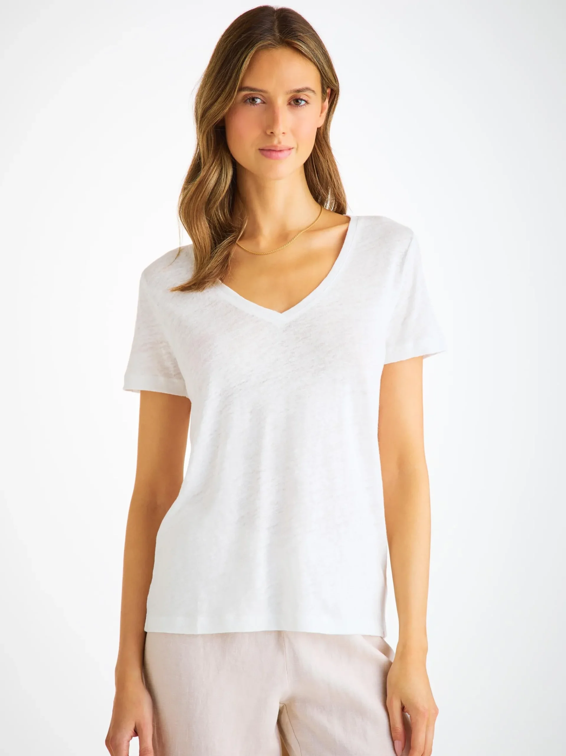 Our women’s Jordan v-neck t-shirt needs to be touched to be believed. Jordan is an exceptionally soft pure linen jersey; this is like no other linen shirt you own. A fabric that typically comes with that rough feeling, our Jordan is cut from a super-soft and lightweight pure linen, knitted with a very fine yarn and finished with a soft wash.