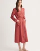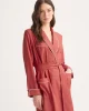 Cut to a flattering calf length, this style features a classic shawl collar, mitred waist tie, and practical pockets — two at the sides and one at the chest — for a polished yet comfortable finish.