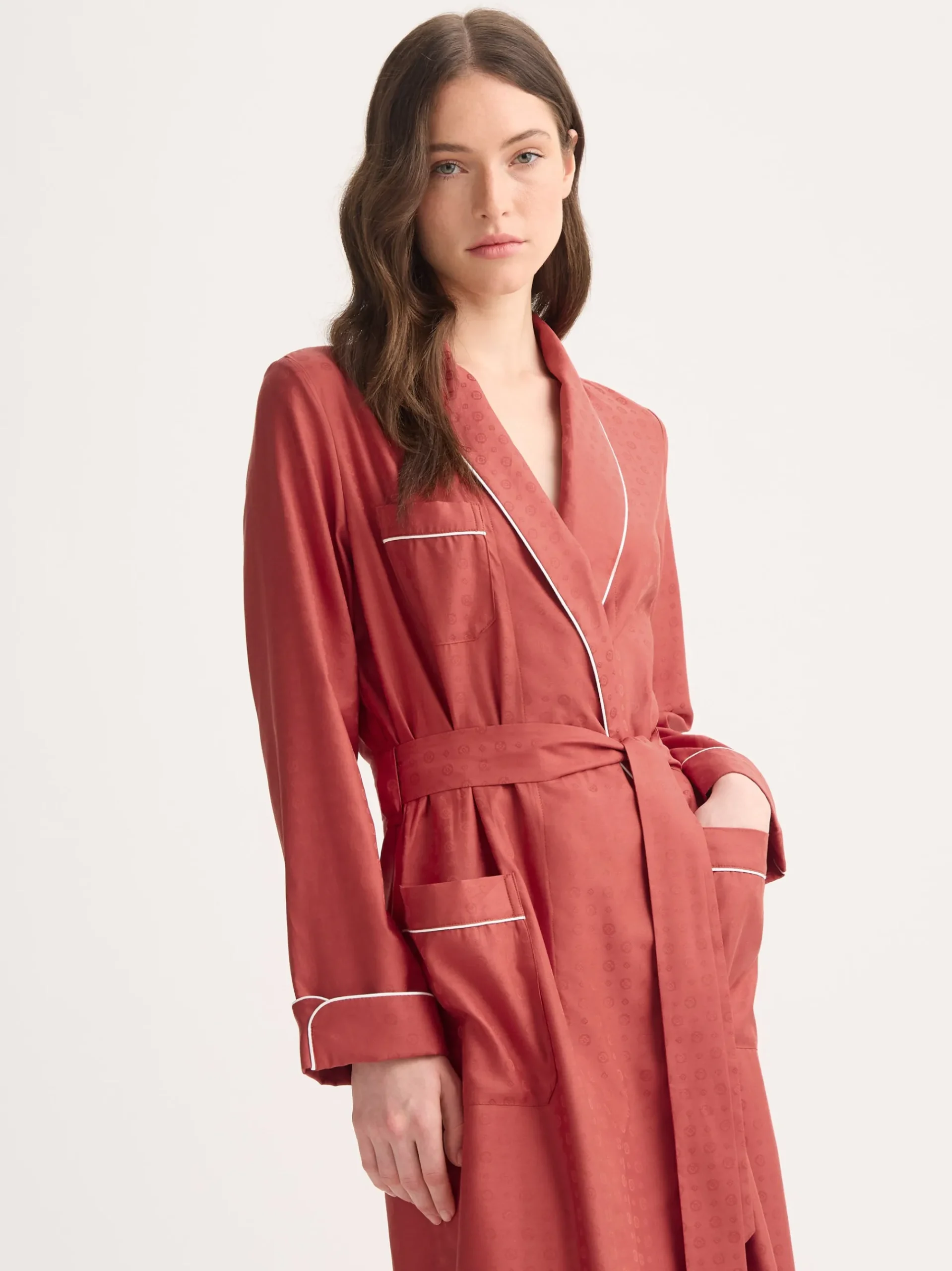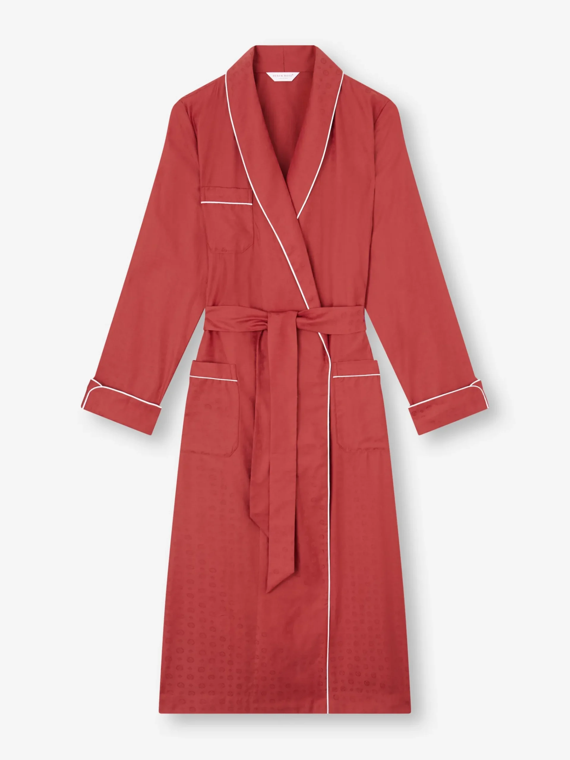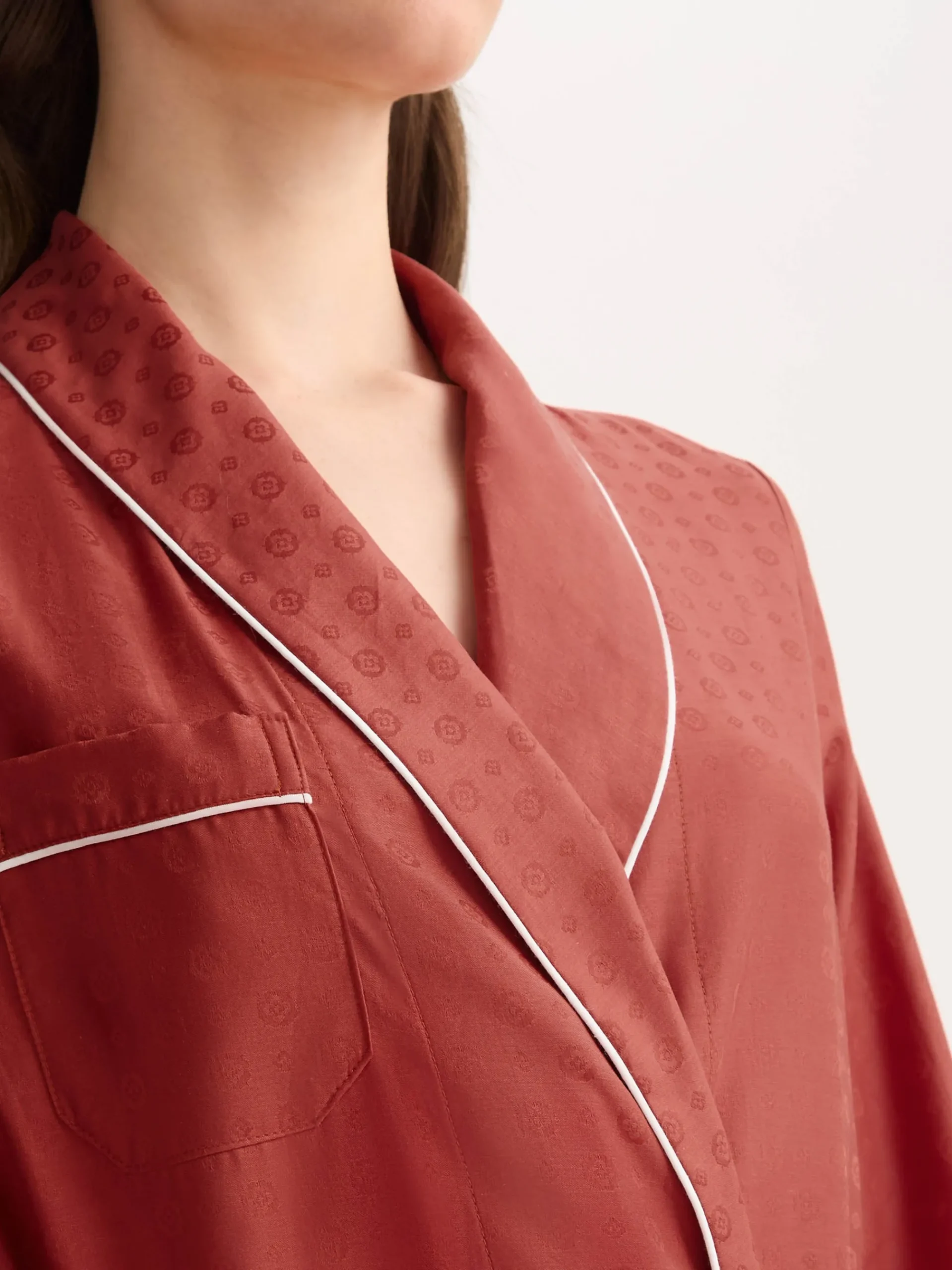Celebrating 100 years of Derek Rose, this dressing gown features a hand-drawn foulard rose design — a refined tribute to our iconic motif, coloured in timeless red tones.