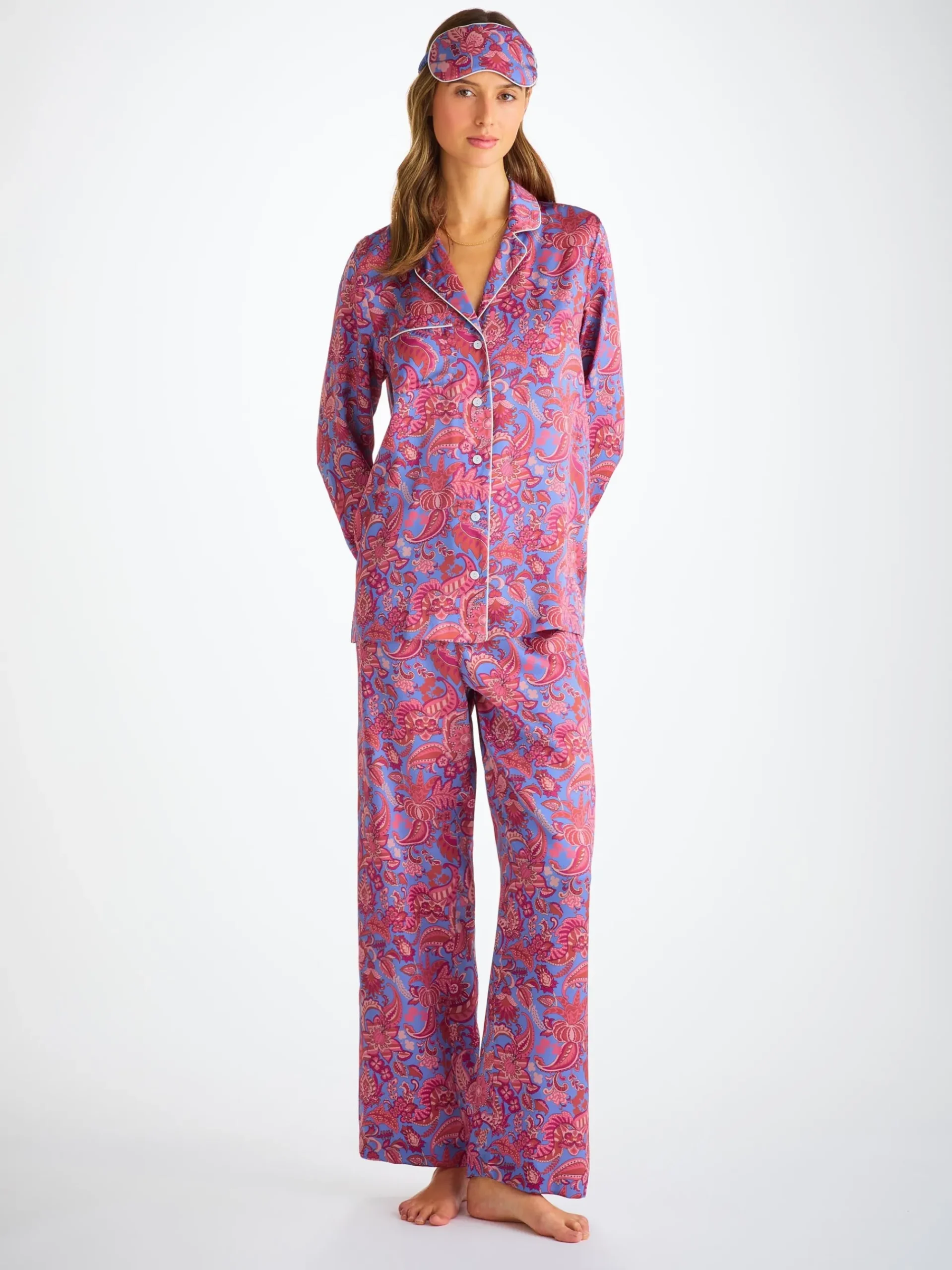 Piped in a complementary ivory, this eye mask is reversible for a comfortable finish, whilst a matching elasticated purple silk strap ensures a secure fit without being constricting on the skin. No more waking up wondering where your mask has disappeared to.