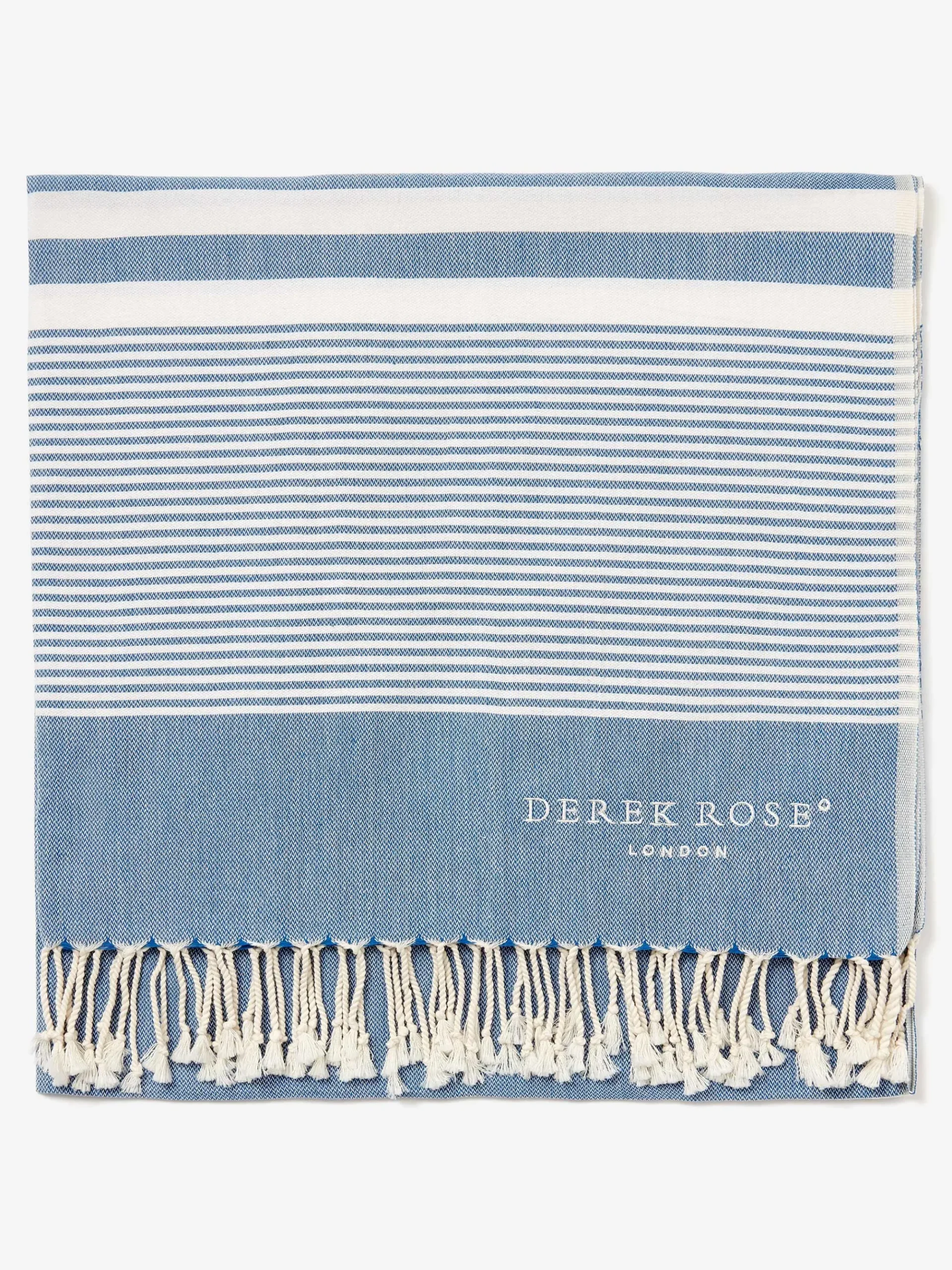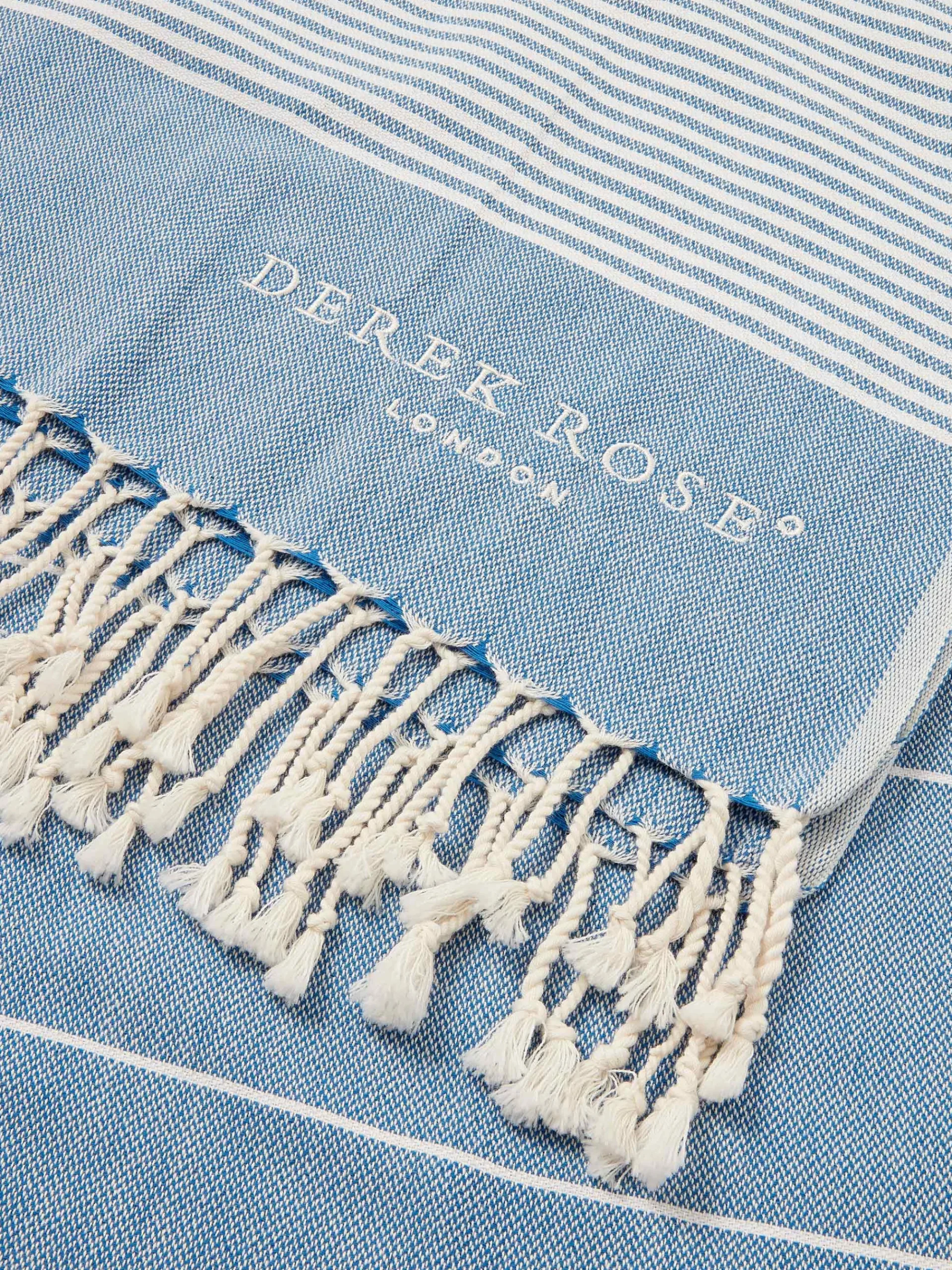 The perfect lifestyle and travel essential, our woven hammam towels are crafted from pure cotton for a fast-drying and stylish alternative to a beach towel. Featuring a striped pattern, with tasselled edges and the Derek Rose logo. Their lightweight and versatile nature means they can be neatly packed into your travel bag.