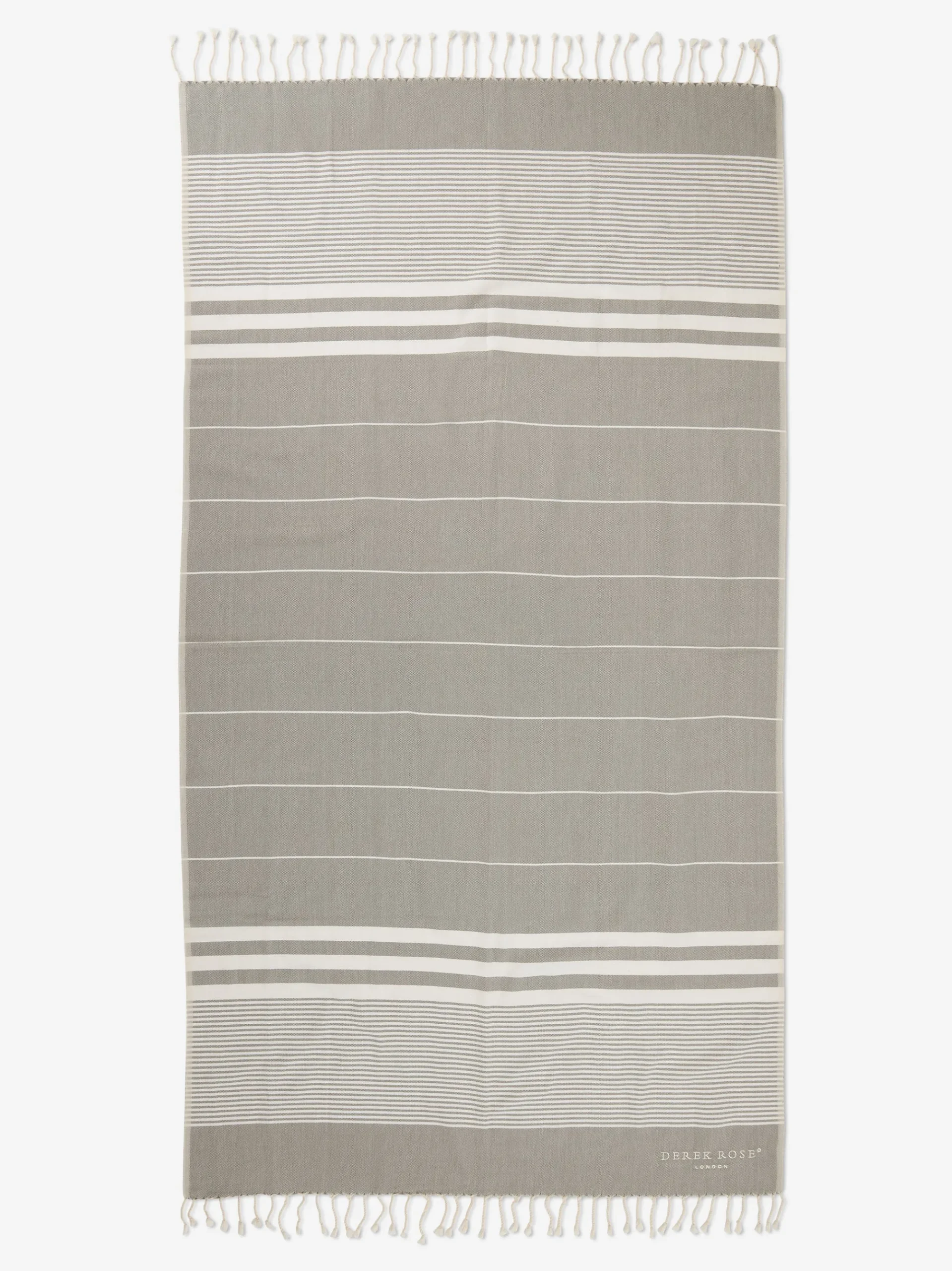 The perfect lifestyle and travel essential, our woven hammam towels are crafted from pure cotton for a fast-drying and stylish alternative to a beach towel. Featuring a striped pattern, with tasselled edges and the Derek Rose logo. Their lightweight and versatile nature means they can be neatly packed into your travel bag.r