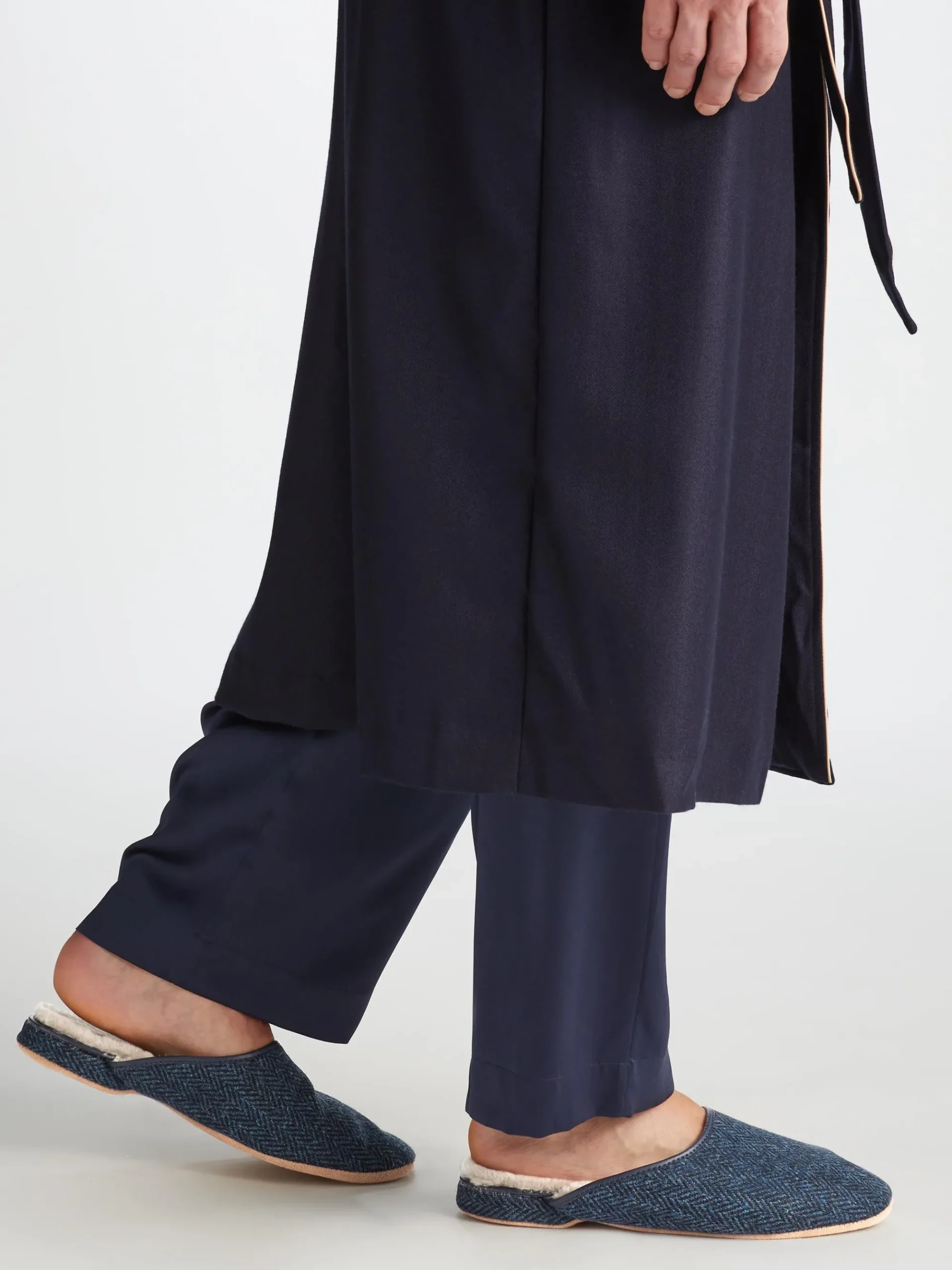 The sole is made from soft suede meaning you can glide around in comfort in the morning without waking the family. The slippers are finished with a navy leather trim for an added touch of luxe.
