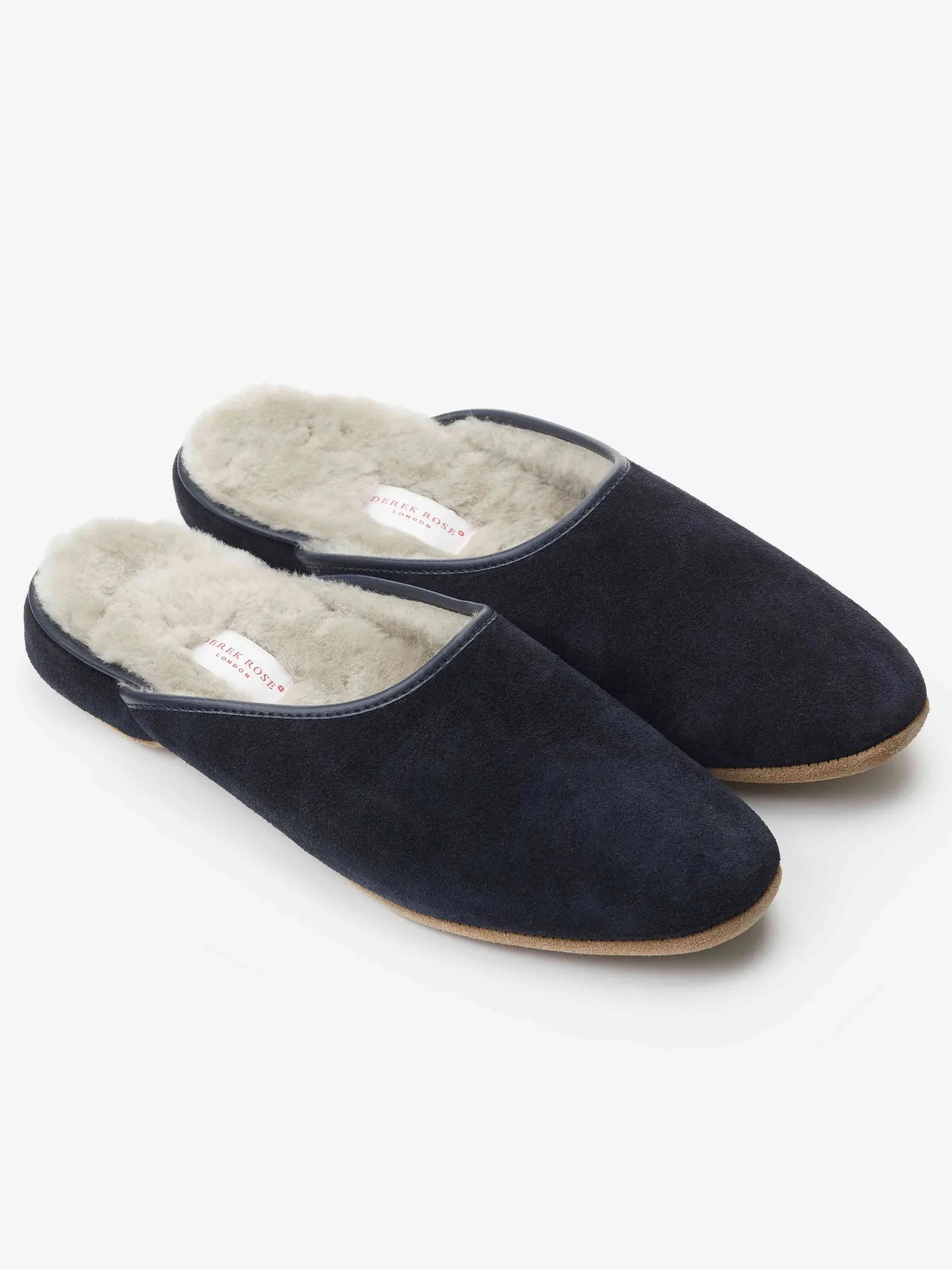 The sole is made from soft suede meaning you can glide around in comfort in the morning without waking the family. The slippers are finished with a navy leather trim for an added touch of luxe.
