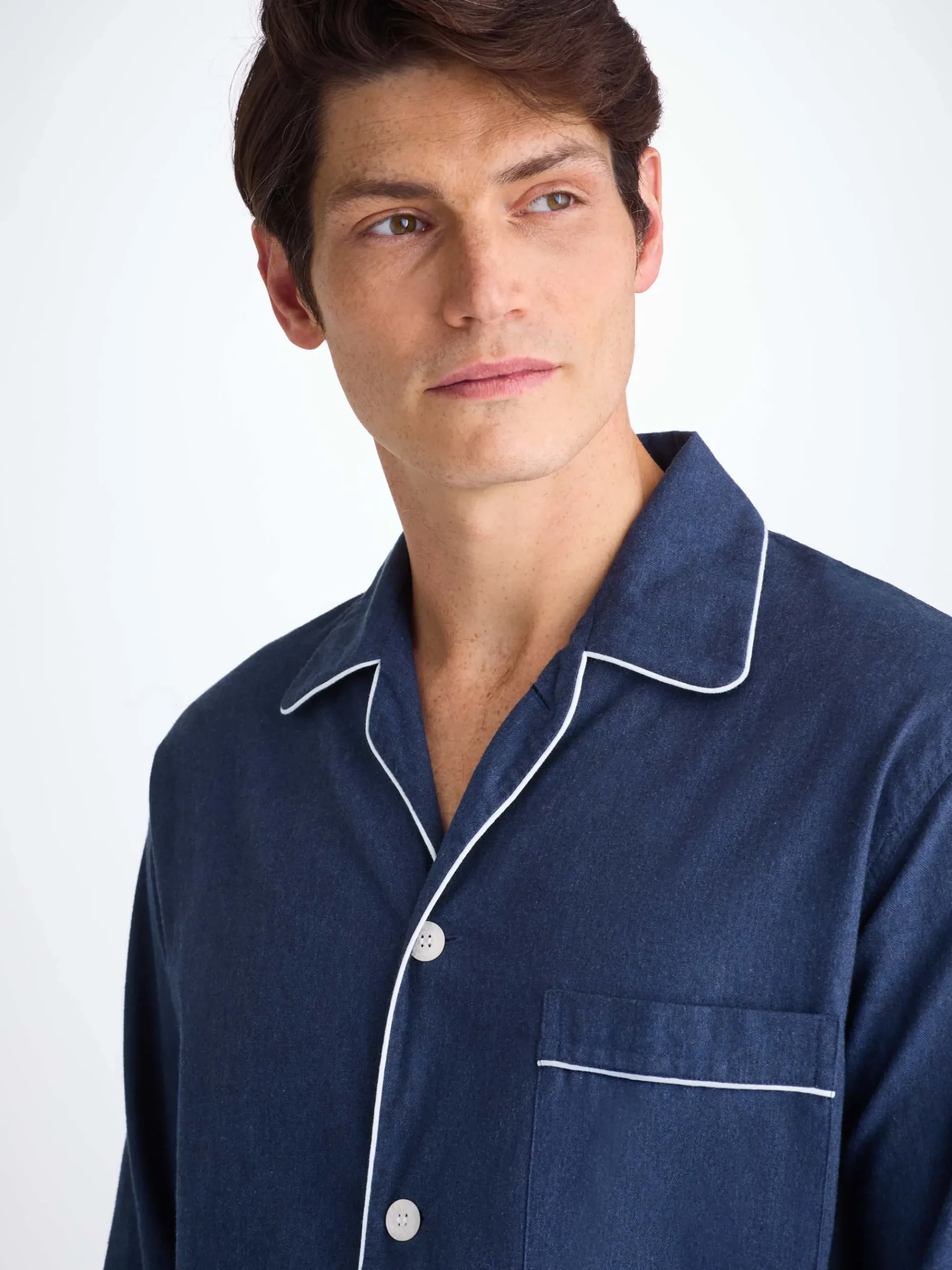 Crafted from a medium-weight brushed cotton, the Balmoral pyjama also features a subtle herringbone pattern woven into the design.