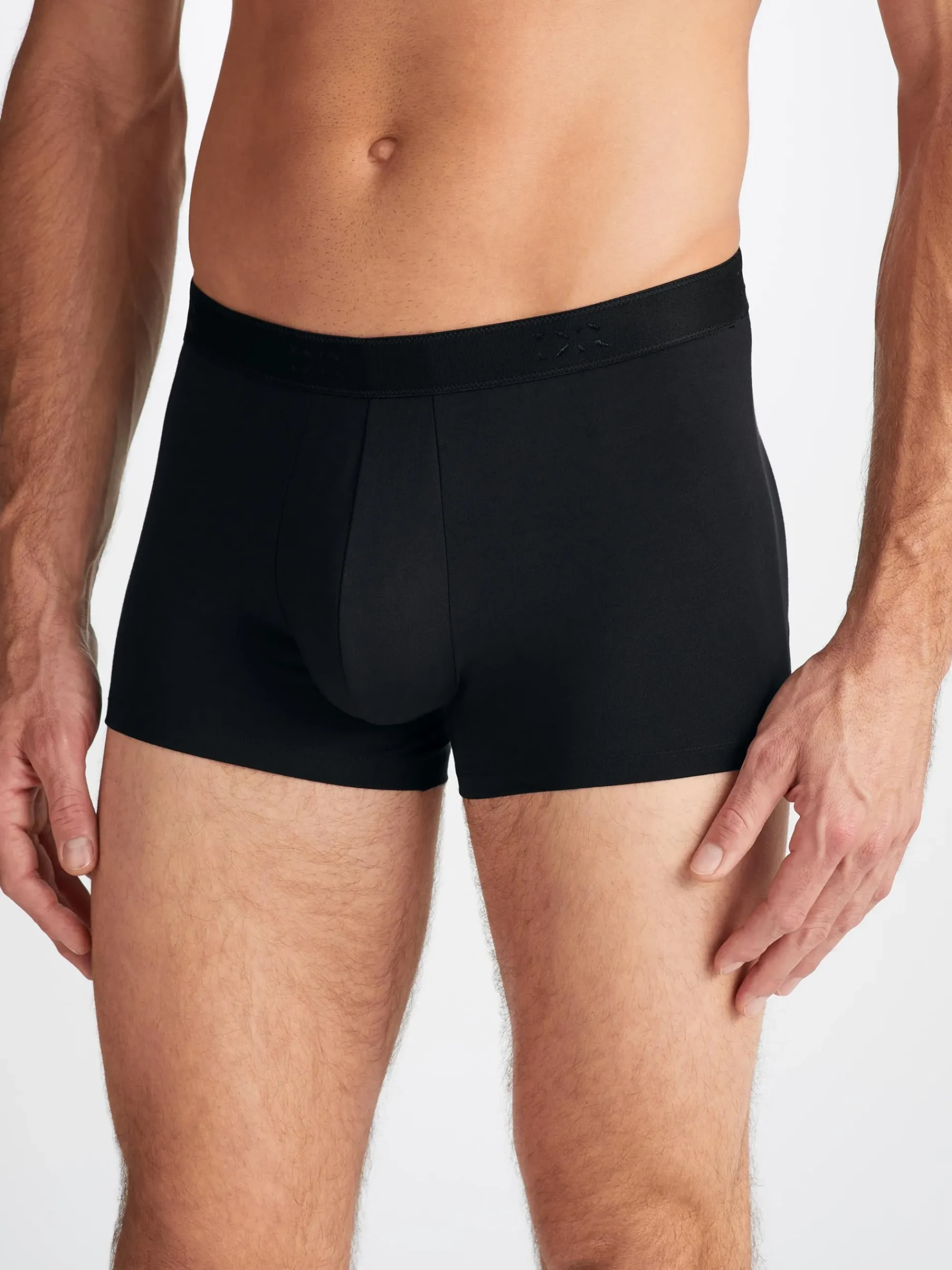 Our Alex boxer briefs in black are cut for a streamlined, classic look with a fitted shape, closed front and a shorter leg. A fabric-covered waistband provides gentle skin contact.