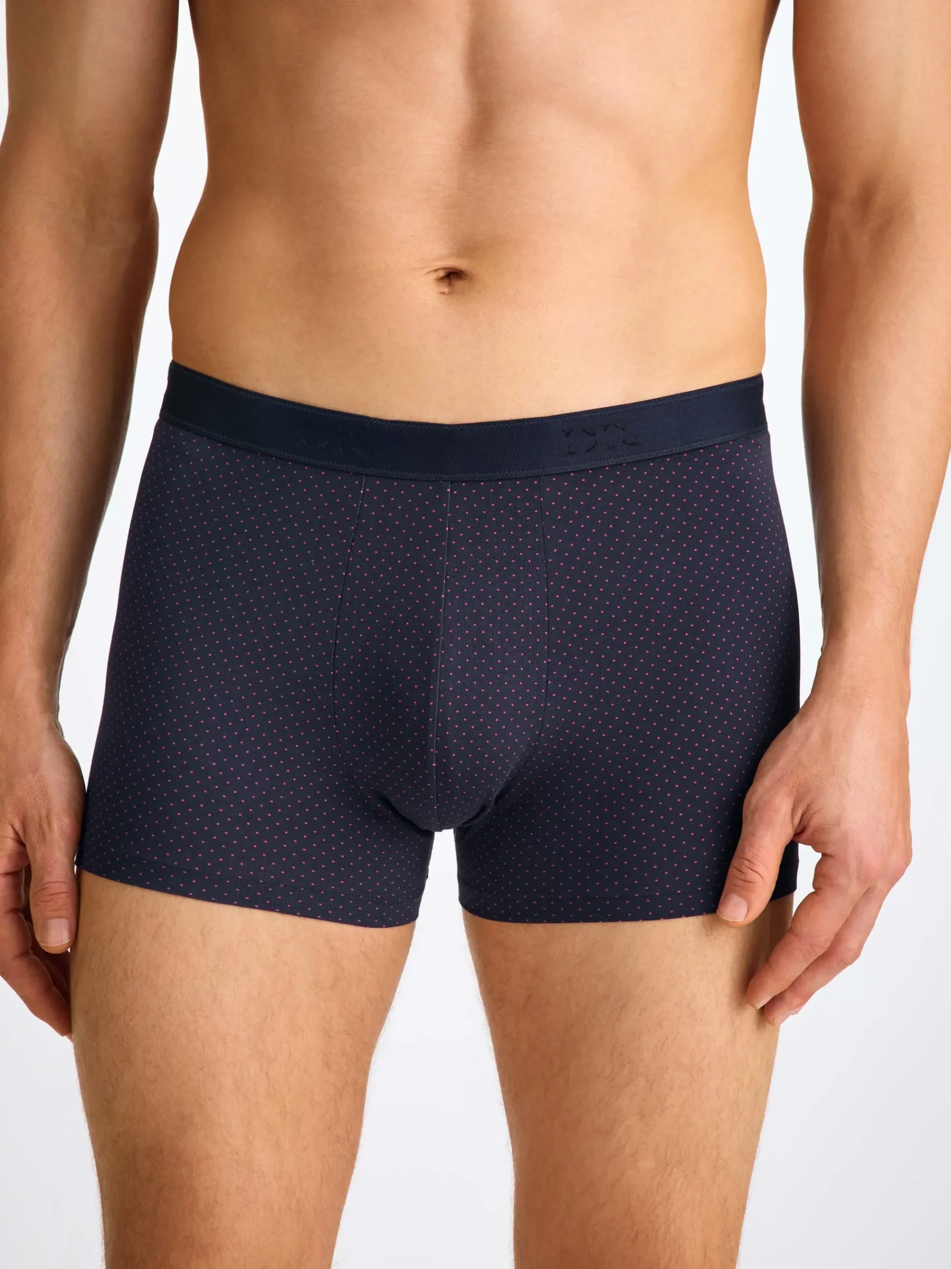 For those who prefer their boxer briefs with shorter legs, our cotton stretch boxer briefs combines a closed front with a streamlined, shorter leg. Featuring a classic navy and camel toned pin dot print.