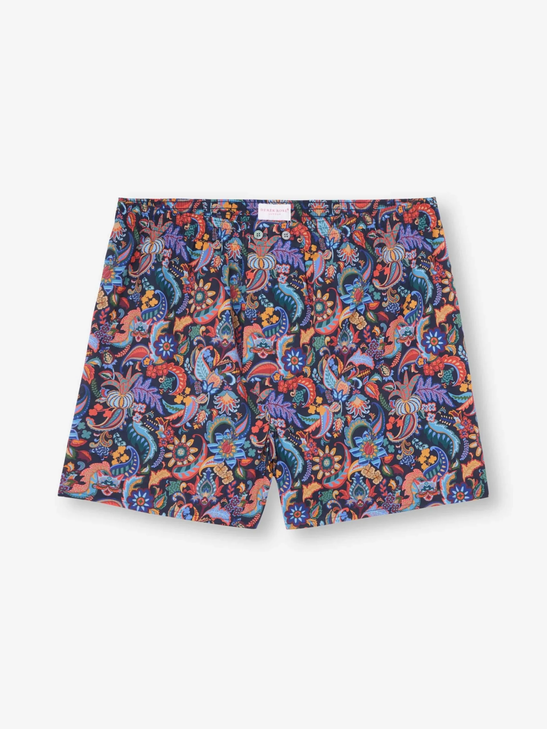Our jungle paisley print combines classic ornamental paisleys with stylised jungle flowers, plant and hidden Derek Rose references. Find the Derek Rose cat, a Rose Star and even our signature stripes.