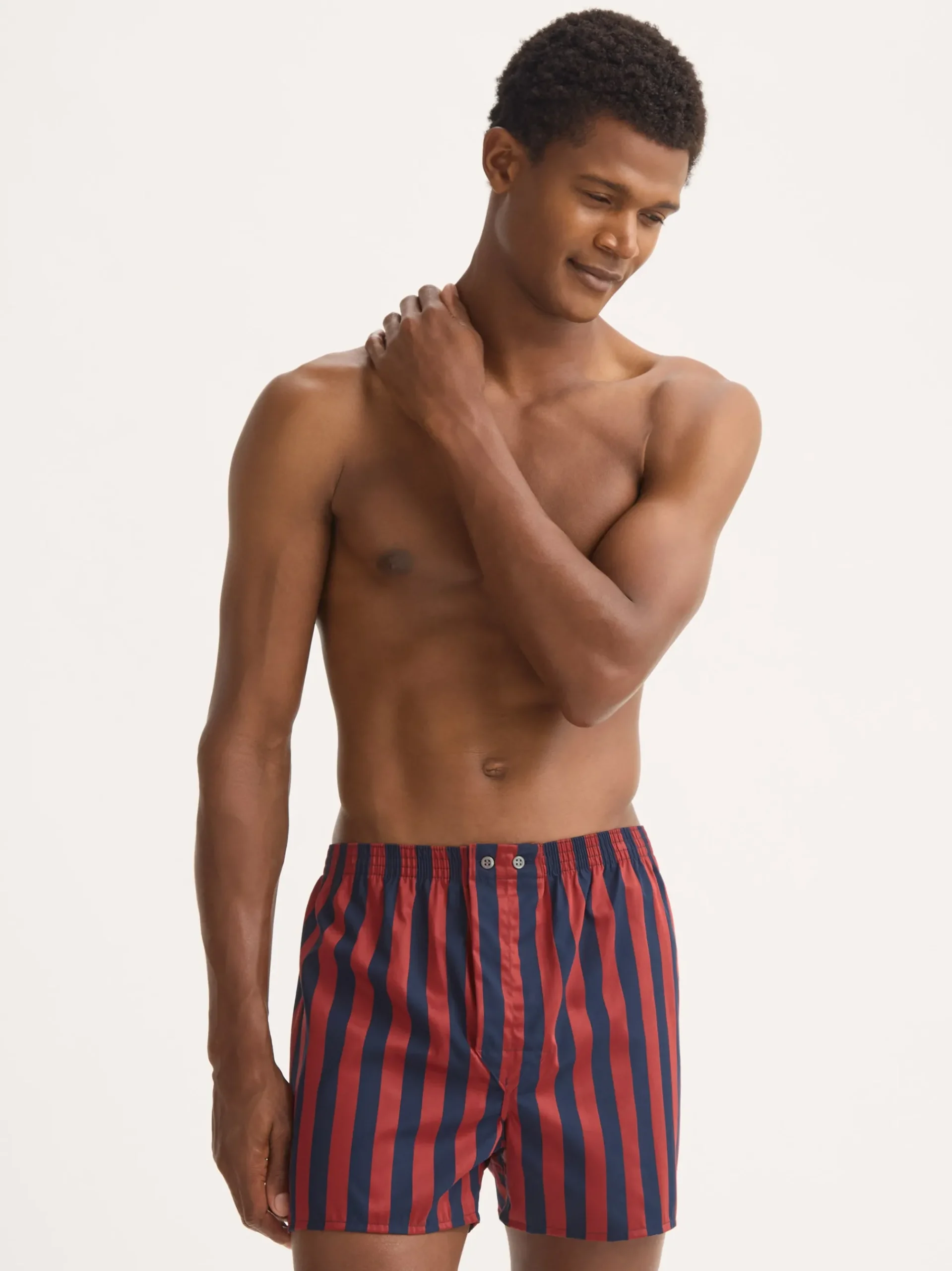 Timeless and refined, our Royal Cotton boxers in navy and red stripe bring a touch of luxury to everyday essentials. Cut from our signature pure cotton, the fabric is lightweight, breathable, and supremely soft — keeping you cool and comfortable all year round.