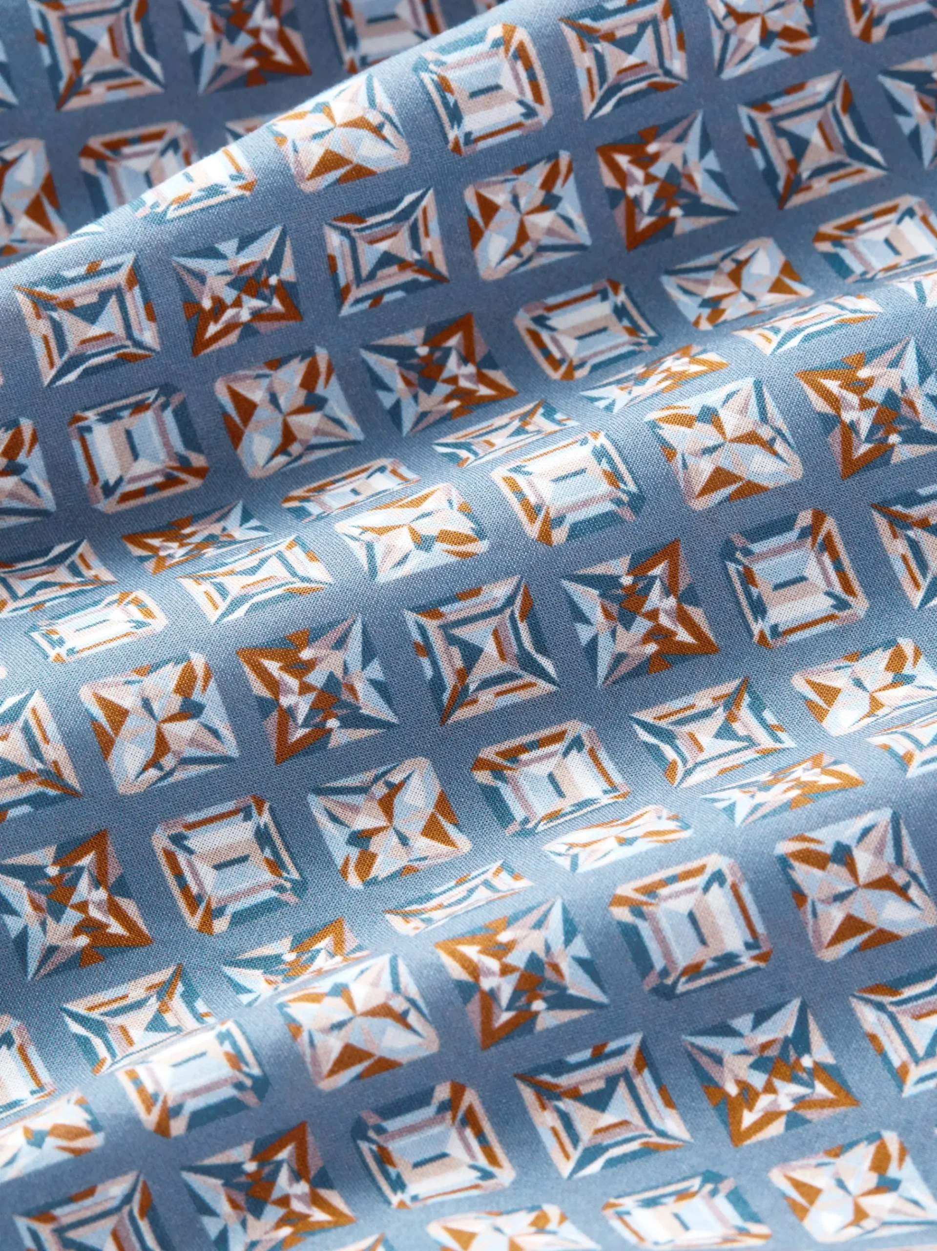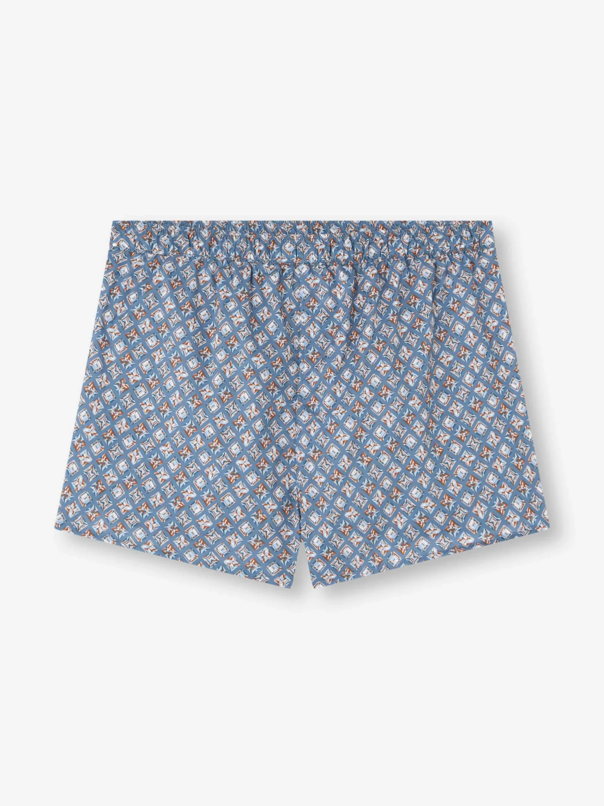 Marking our centennial, these multicolour blue boxer shorts feature a geometric diamond motif print — a playful, energetic take on a timeless symbol of celebration.