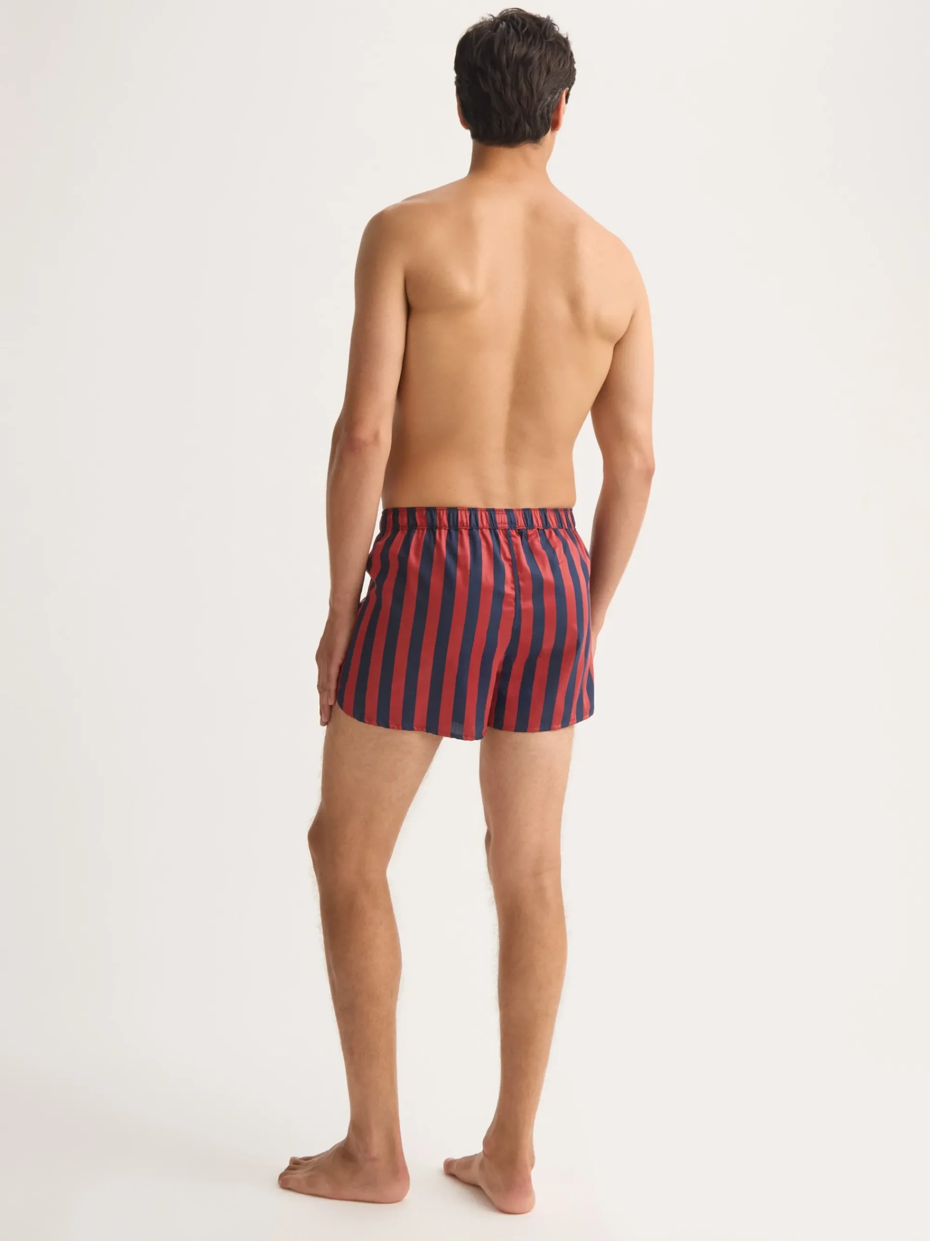 Crafted from pure cotton with subtle satin stripes in navy and red, our Royal Cotton modern fit boxers offer a refined update to a timeless essential. Lightweight, breathable, and luxuriously soft, they deliver all-day comfort with an effortlessly polished look.