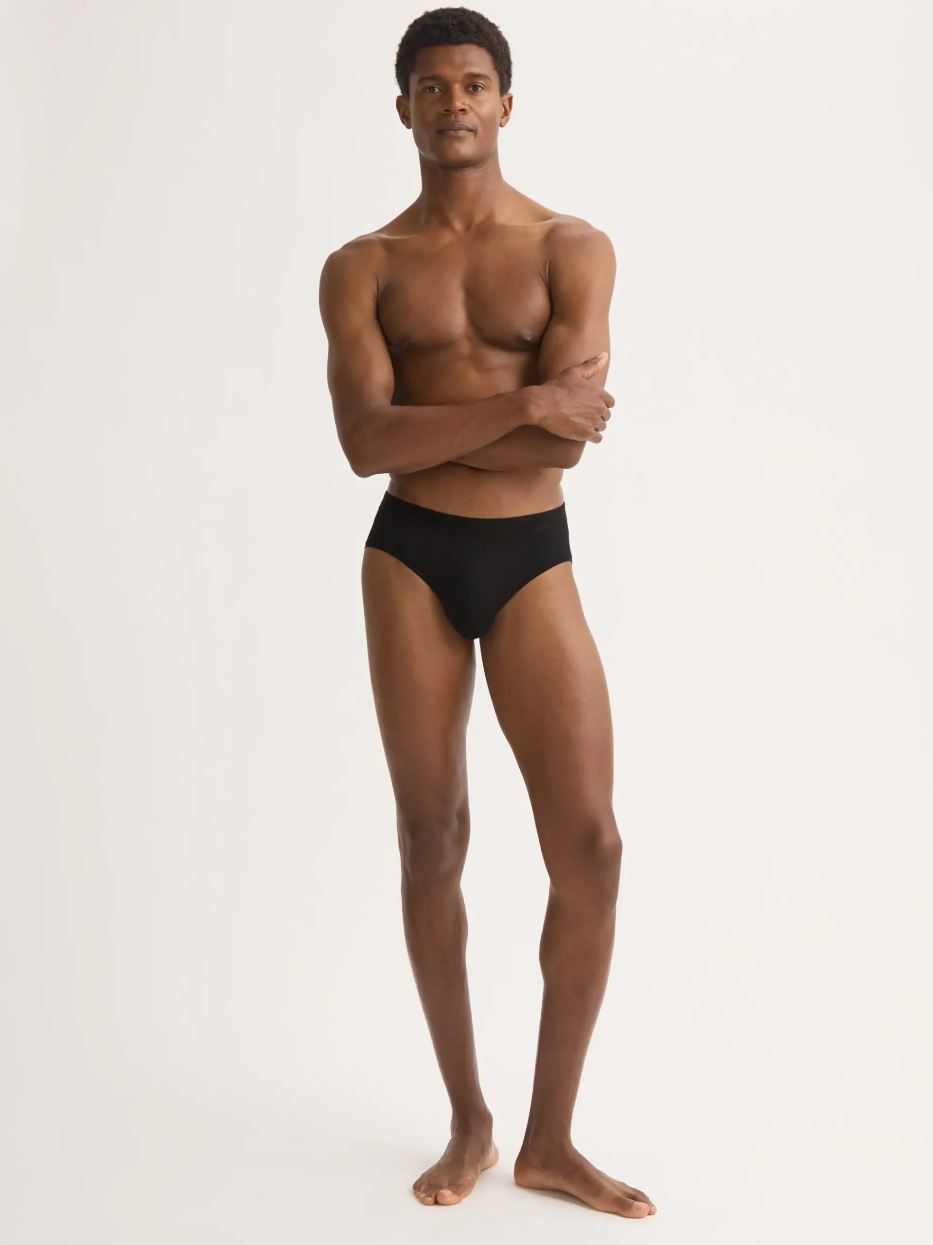Our mid height brief has a closed front for a clean and classic look. We chose a super-soft binding to finish the hems; all part of our quest for a minimalist streamlined look and the ultimate in softness and comfort.