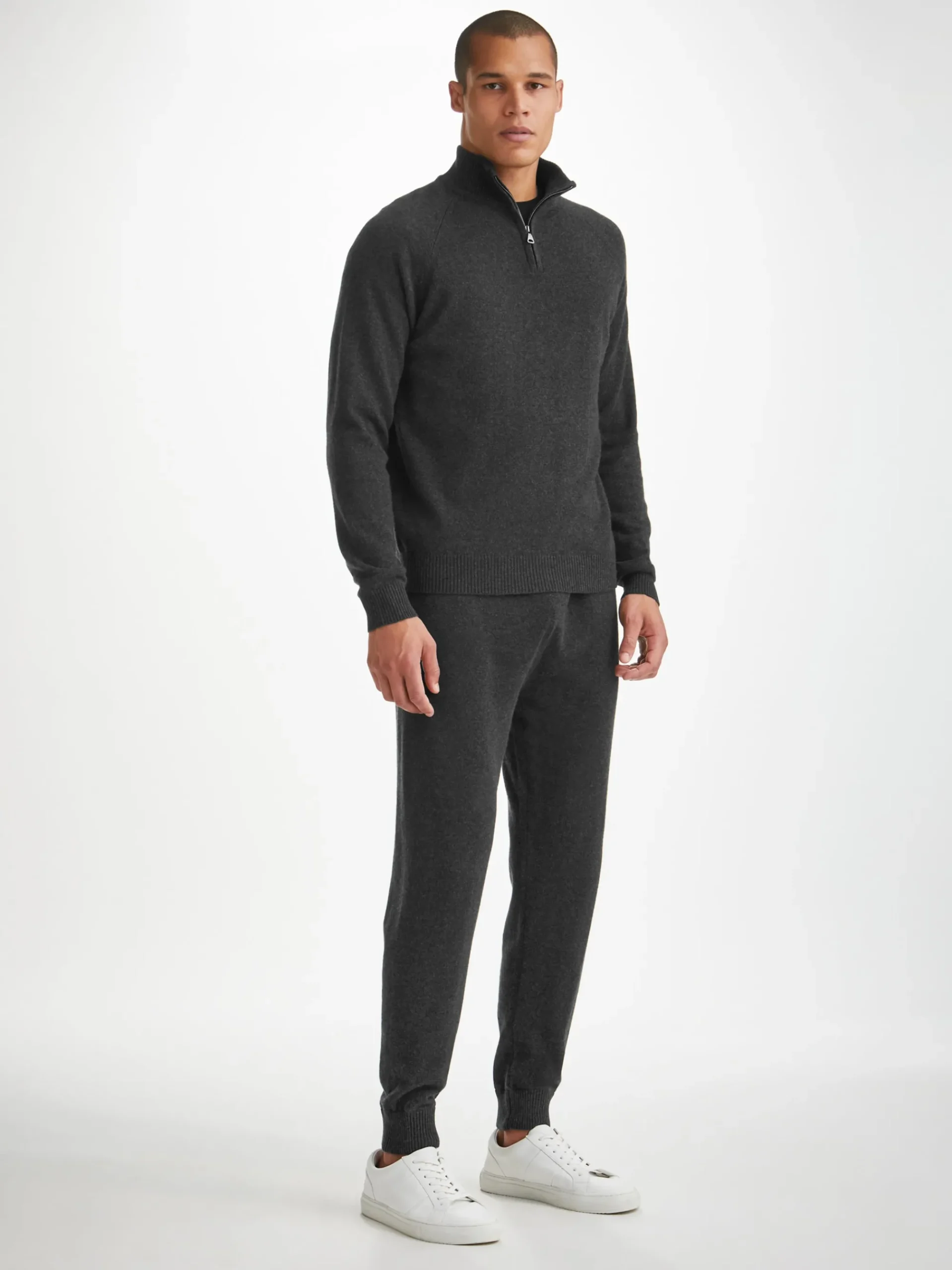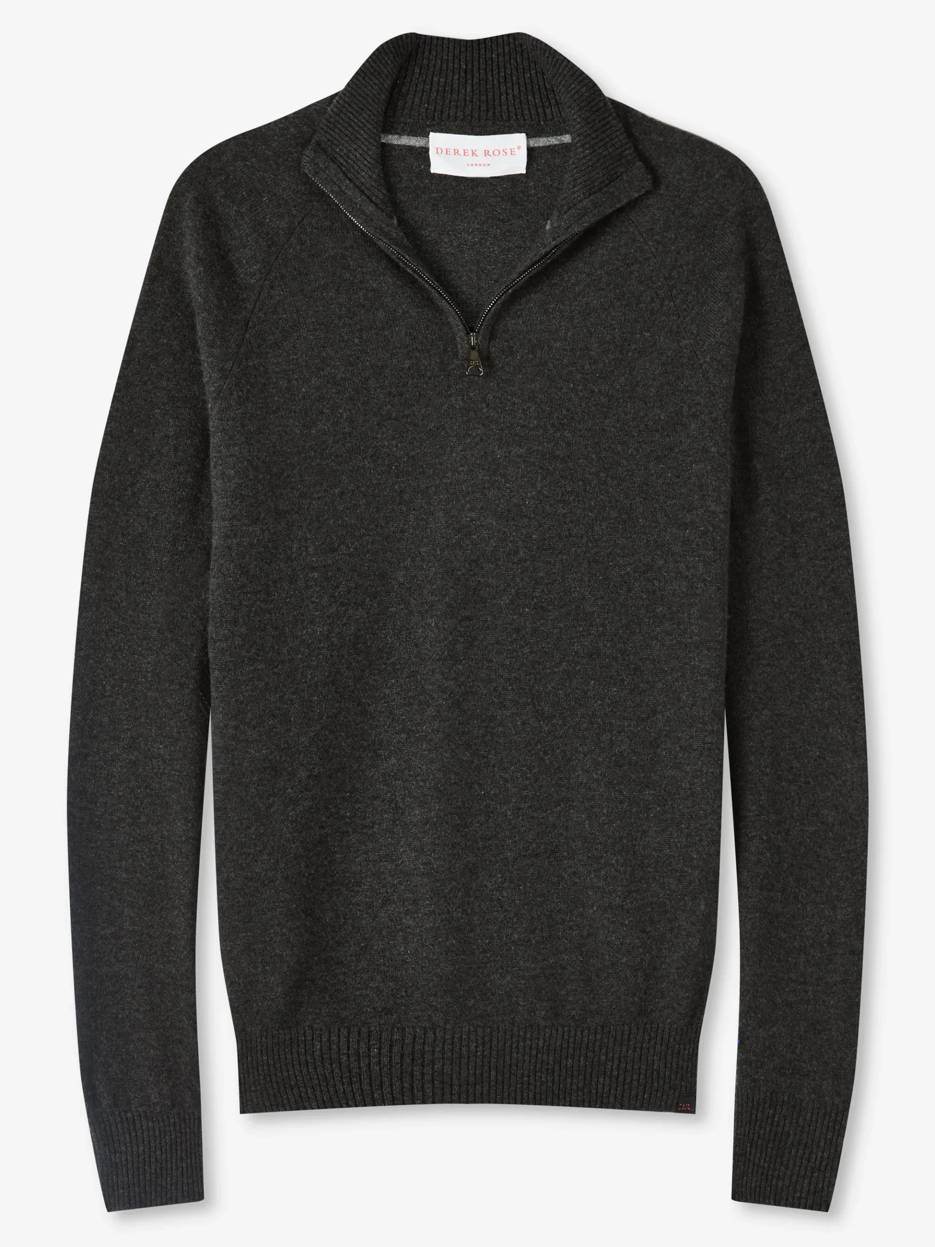 Knit from pure cashmere, our navy half-zip sweater fits closely to the frame, keeping you warm and cosy. The top features a carbon zip-puller that is contoured to your natural fingertip curve for a quick and easy closure should it get colder.