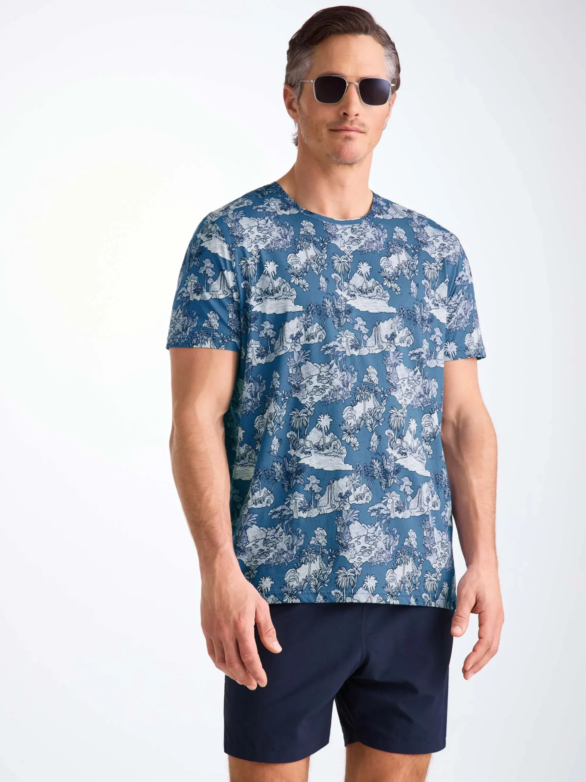 We have focused on uniting beautiful, inspirational designs with our market-leading technical approach for our resortwear range. Featuring our blue island hopping print; a modern interpretation of a toile du jouy. Filled with tropical trees and plant life, it features a tropical bird flying in between islands.