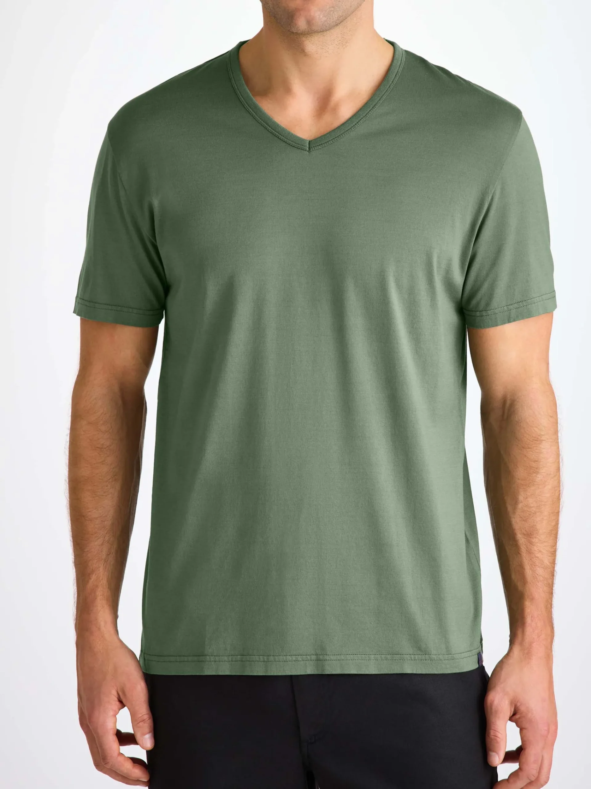 Created in a casual relaxed fit, the v-neckline features a bound collar with detailed ribbing. We have chosen to print our label inside of the neckline for optimal comfort.