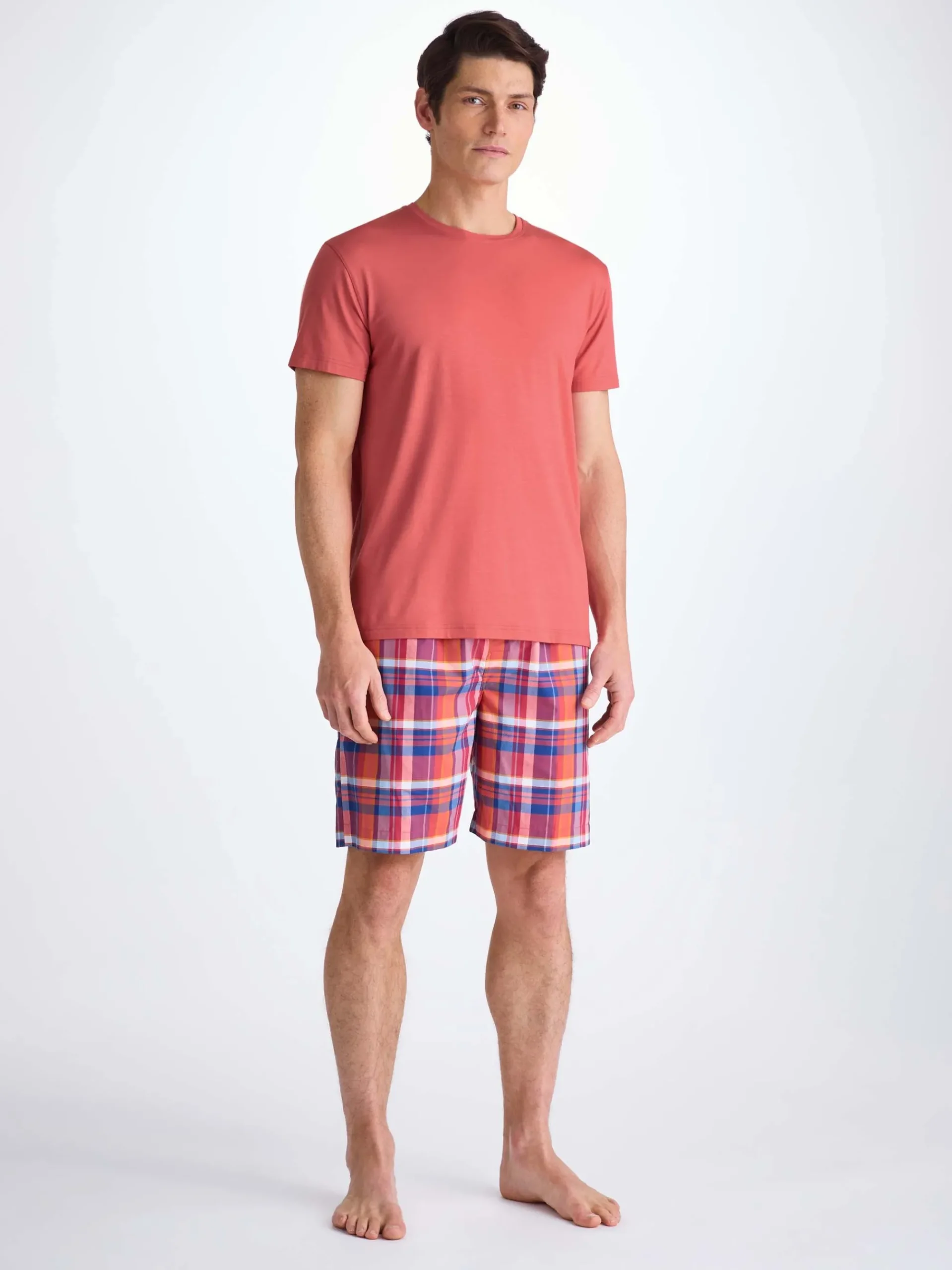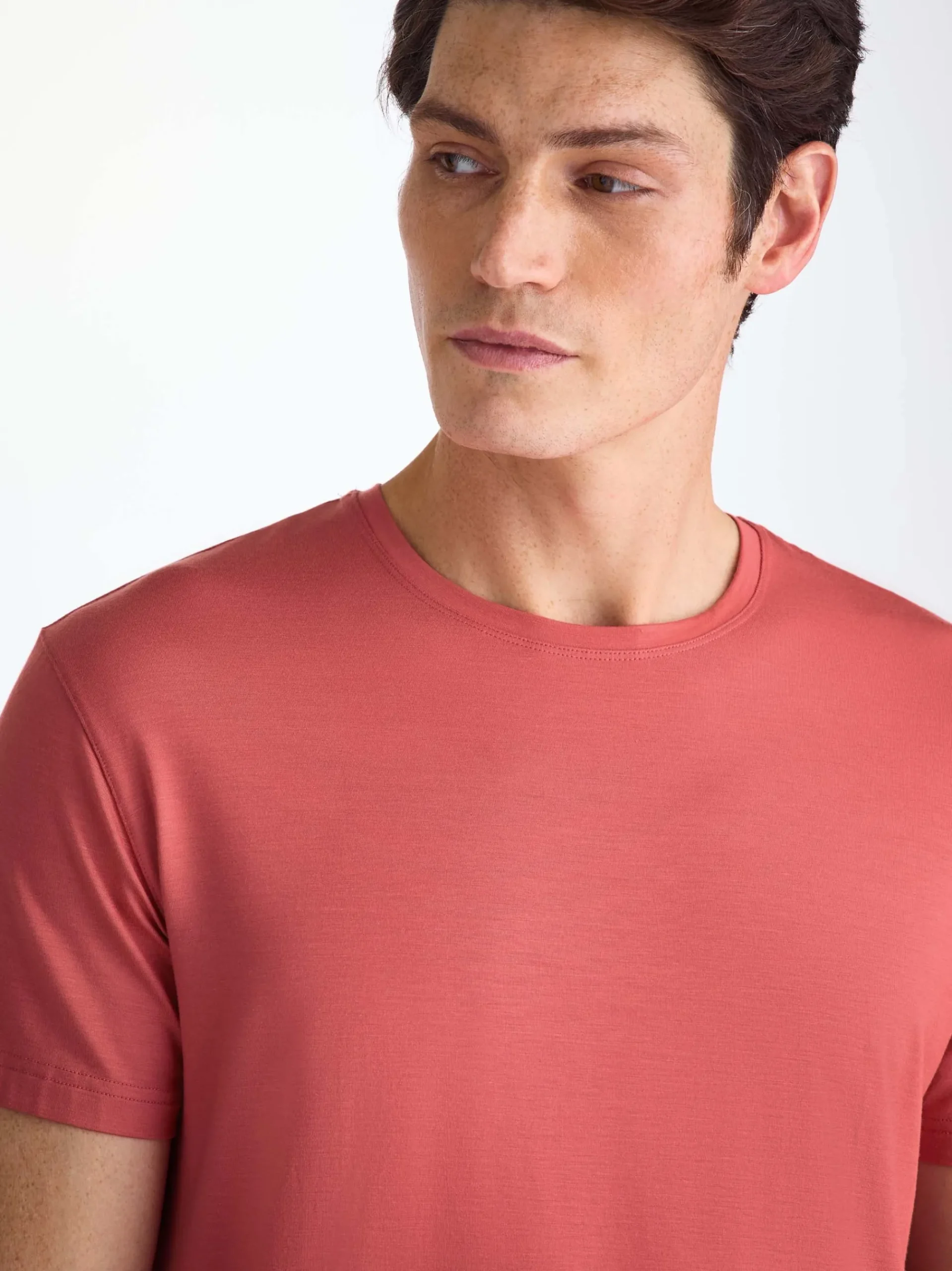 Our Basel menβs T-shirt in apple red offers a bright, confident lift paired with our signature softness. Made from stretch micro modal, it drapes smoothly and feels wonderfully comfortable for lounging, sleeping or travel.