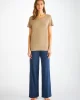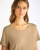 Our women’s camel toned leisure t-shirt is an effortlessly chic sport-luxe essential.