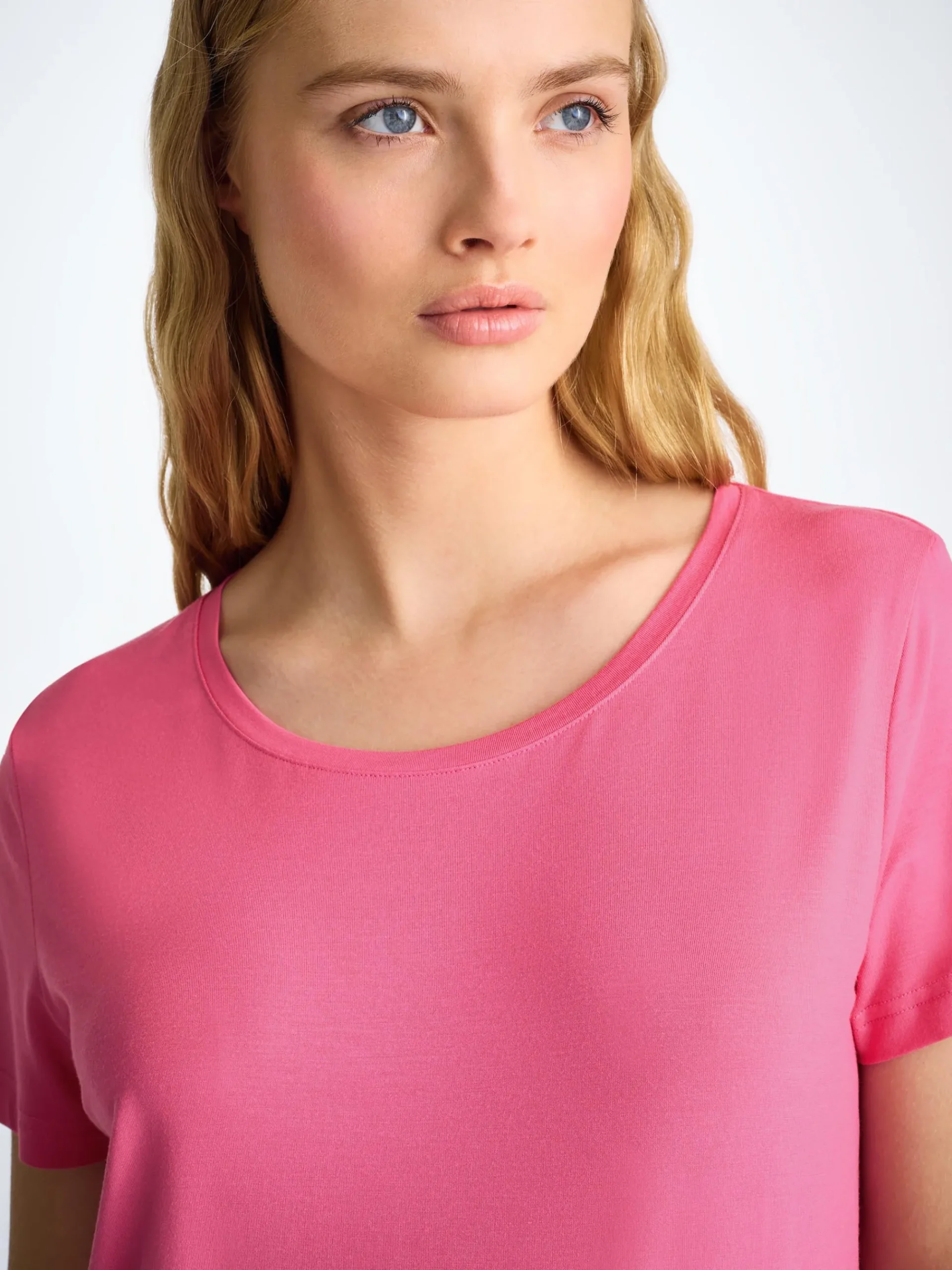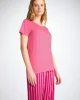 Our new women’s flamingo pink toned leisure t-shirt is an effortlessly chic sport-luxe essential.