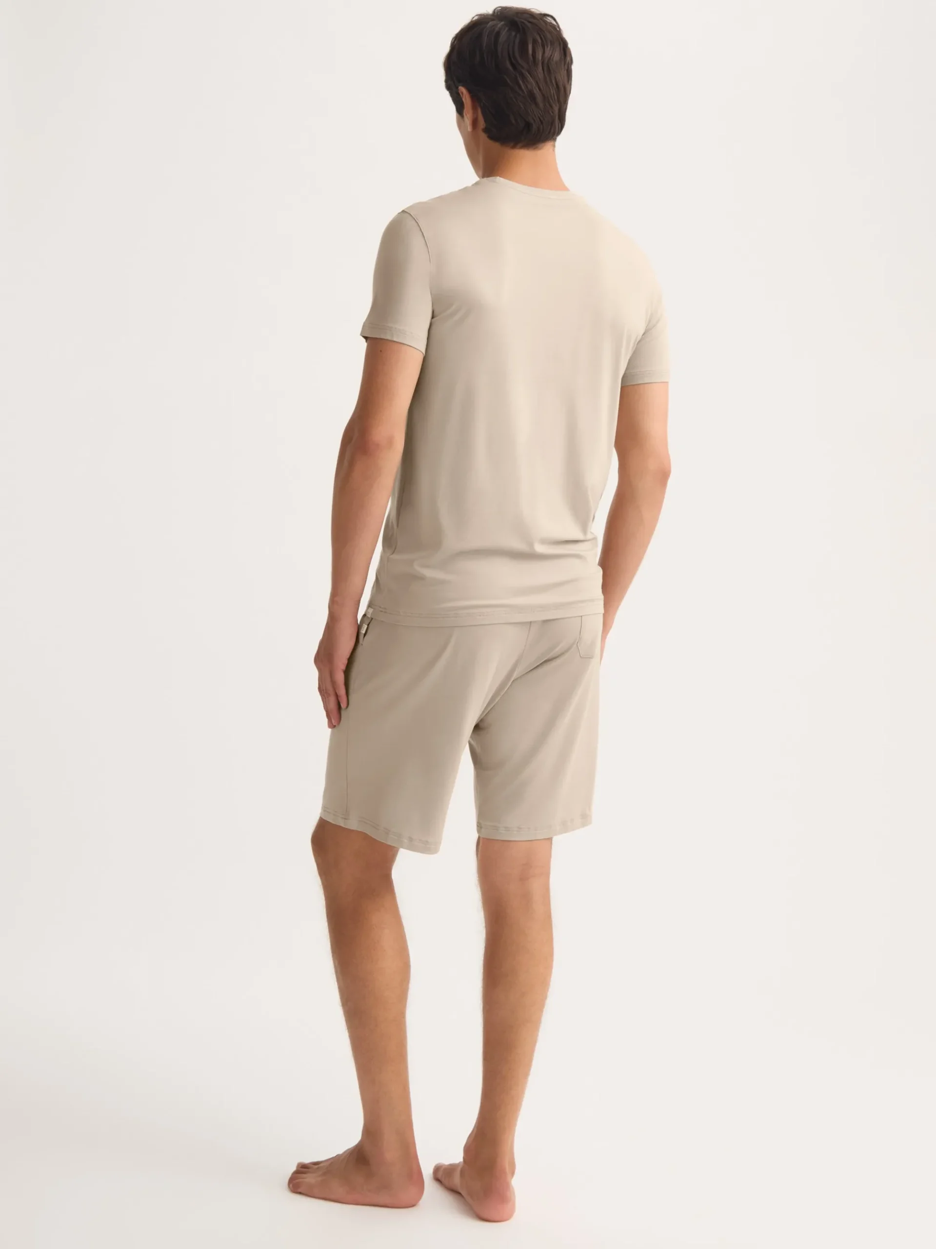 Our signature Basel menâs t-shirt in light stone is the perfect blend of style and easeâlightweight, breathable and exceptionally soft. Made from stretch micro modal, it moves with you and adapts to your bodyâs temperature, keeping you cool or warm as needed. Ideal for lounging, sleeping or travelling in comfort, itâs a wardrobe essential youâll reach for again and again.