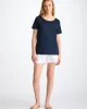 The details have been kept minimal for a clean finish and exceptional comfort. Seen here in navy, the open crew neck is perfect for relaxed styling .