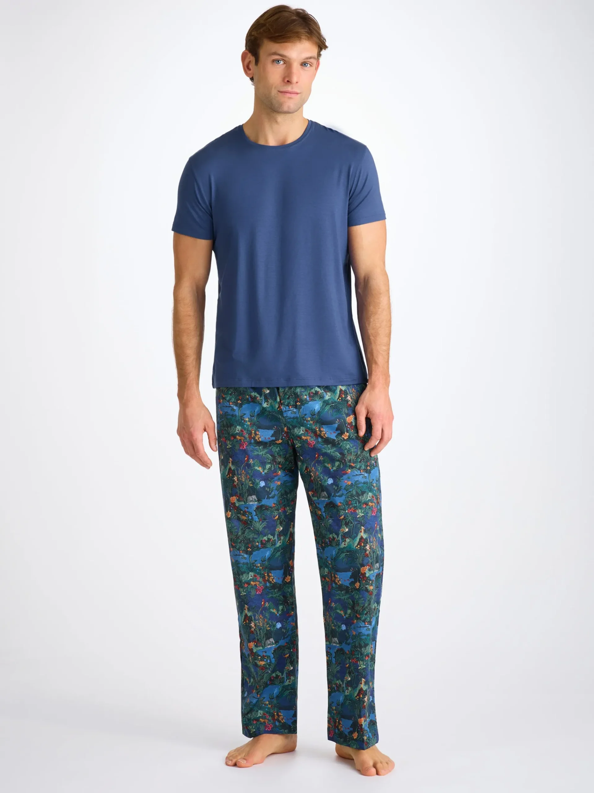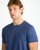 Our Basel menβs T-shirt in sapphire brings a vivid, modern tone to our signature softness. Made from stretch micro modal, it offers a fluid drape and gentle comfort ideal for sleep, lounging or long travel days.