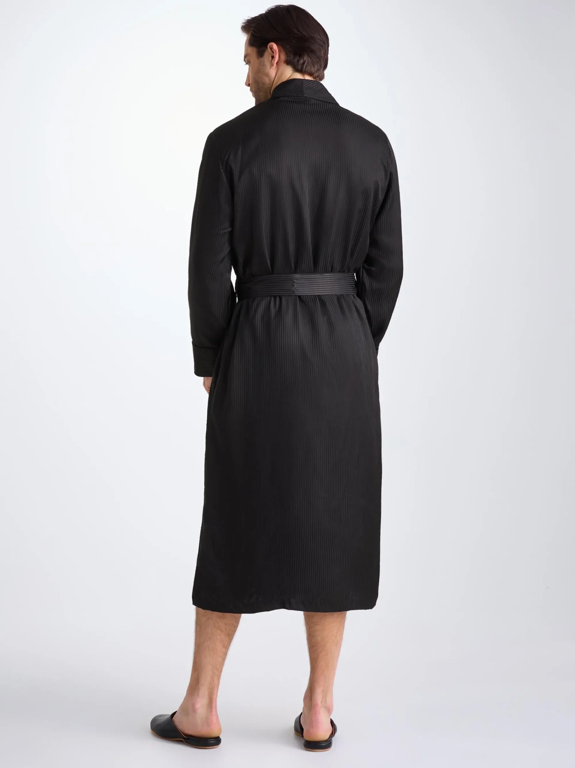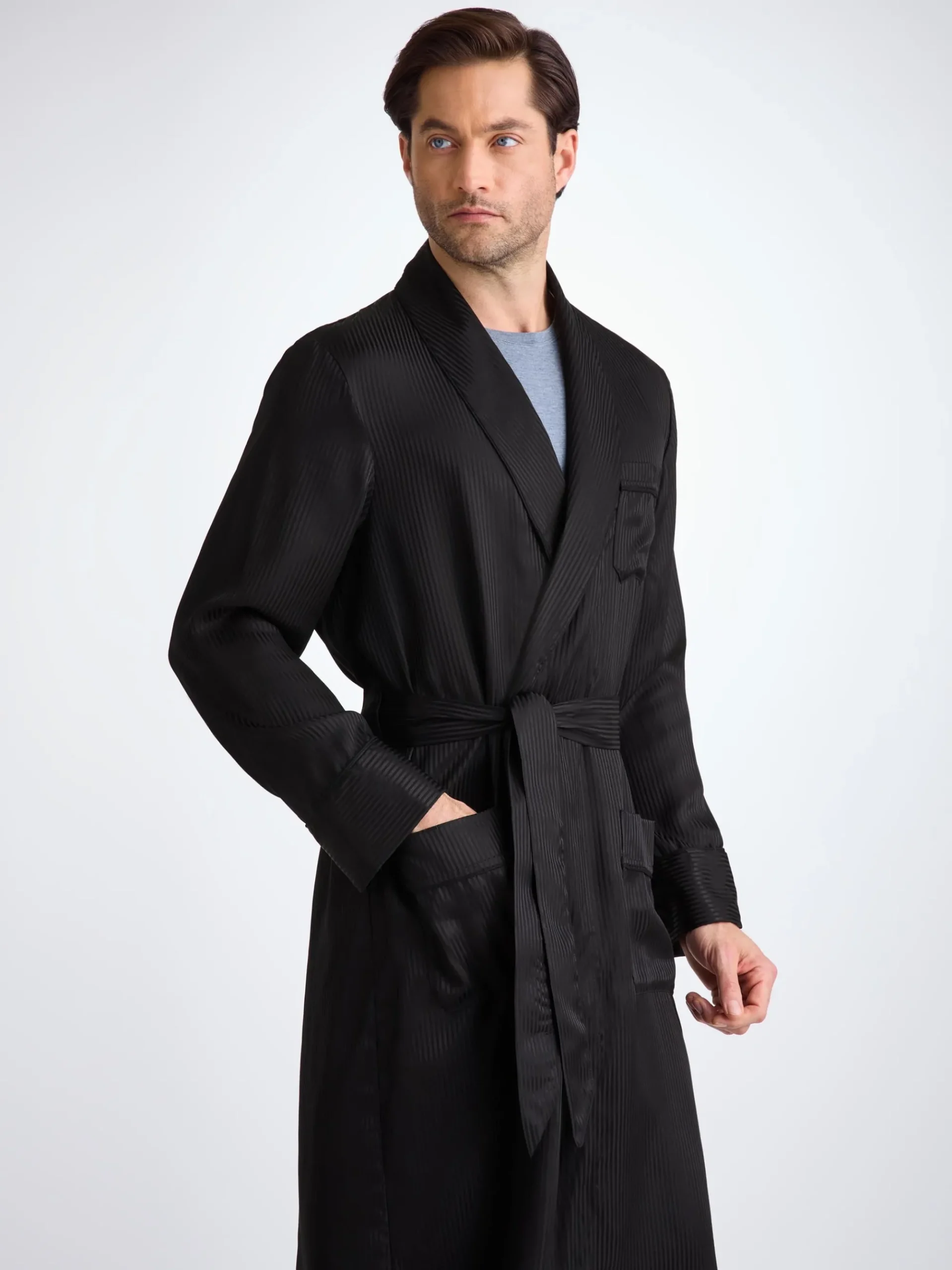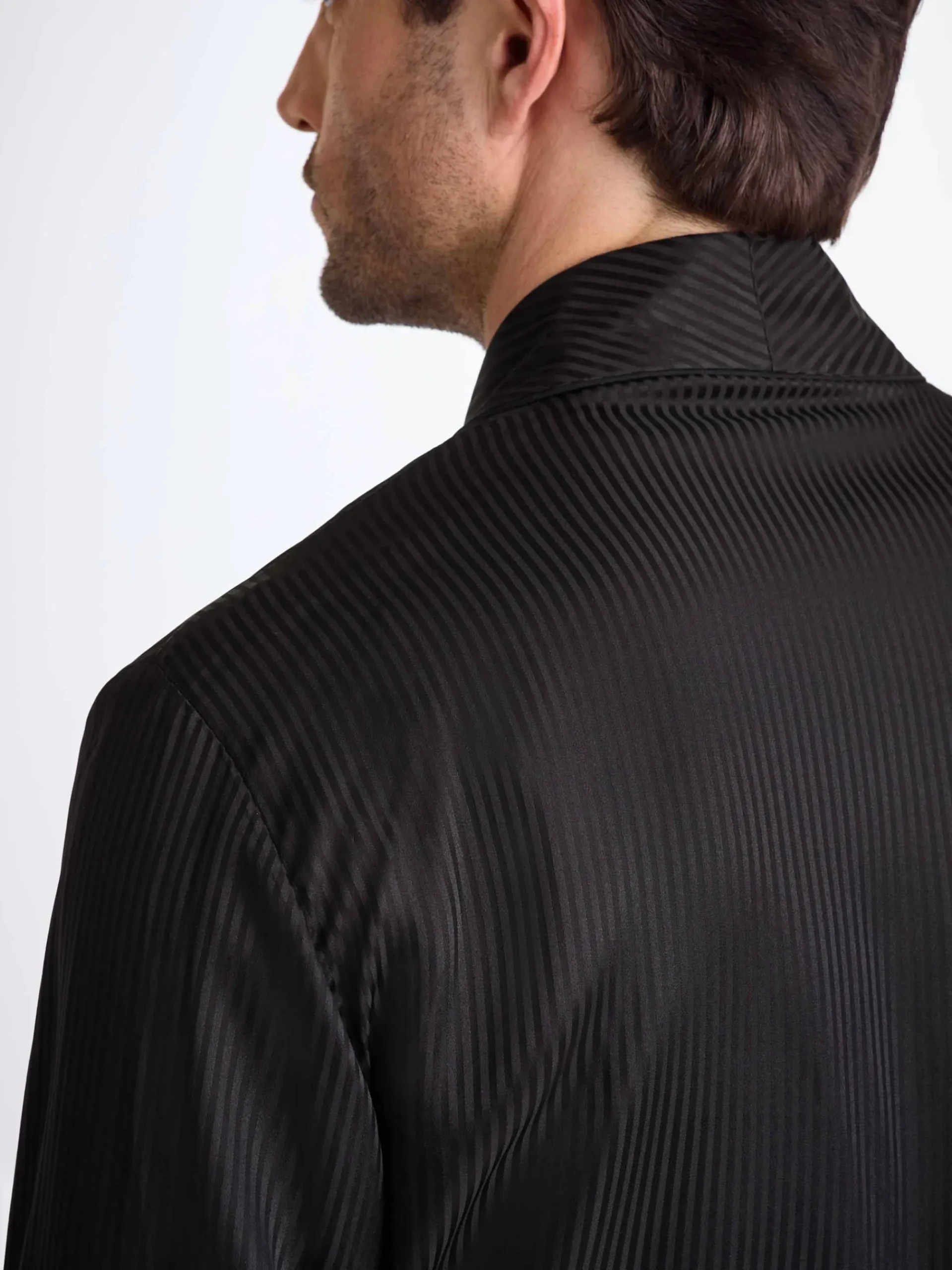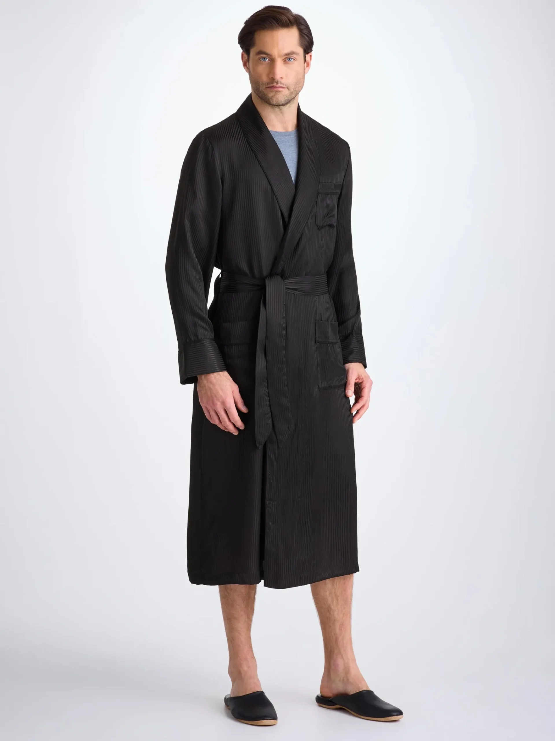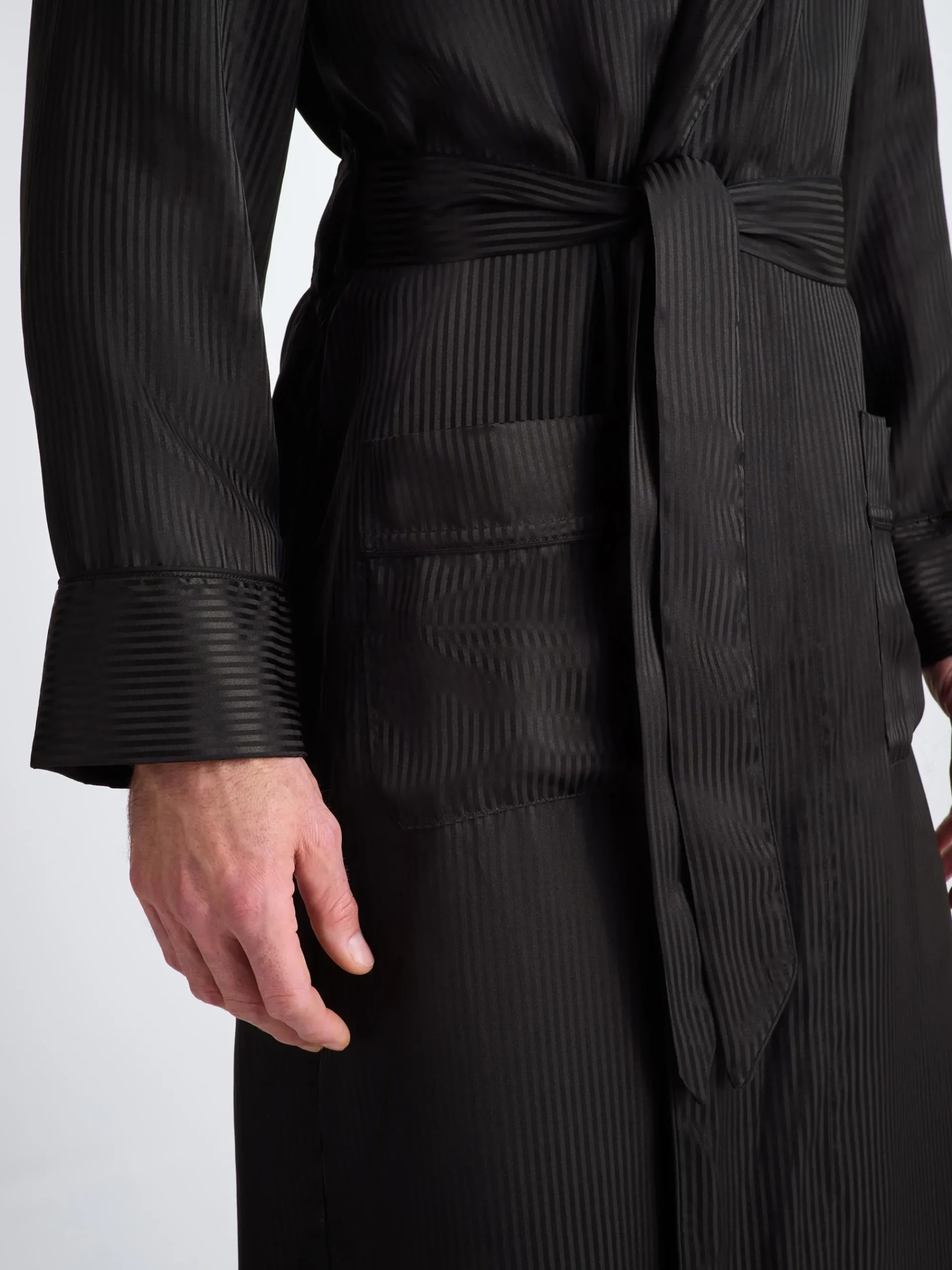 One of our best-selling dressing gowns, the Woburn strikes the perfect balance between luxury and simplicity. It features a satin stripe design, a classic shawl collar with a breast pocket and two front pockets detailed with black piping for practicality while around the house. With the addition of a fabric tie waist belt for the perfect fit.
