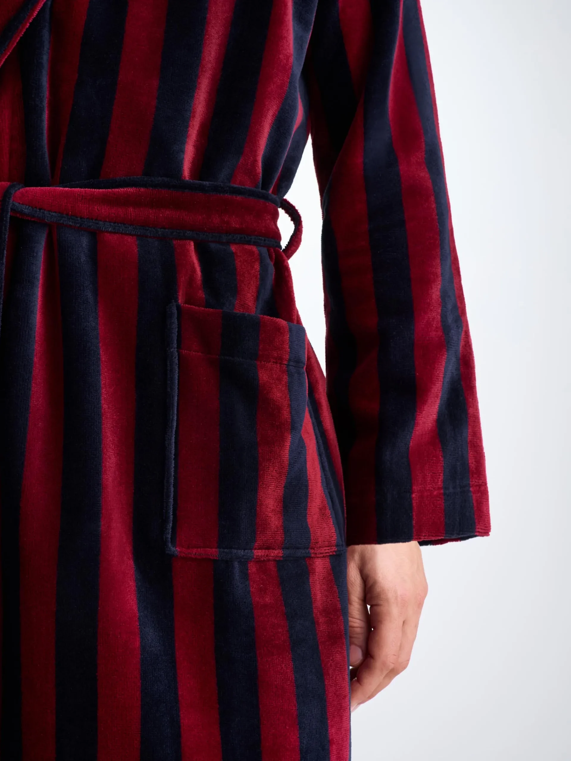 Our Aston bathrobe is a customer favourite, it features a classic shawl collar and two side pockets for practicality while around the house. It’s fastened with a fabric tie belt for the perfect relaxed fit.