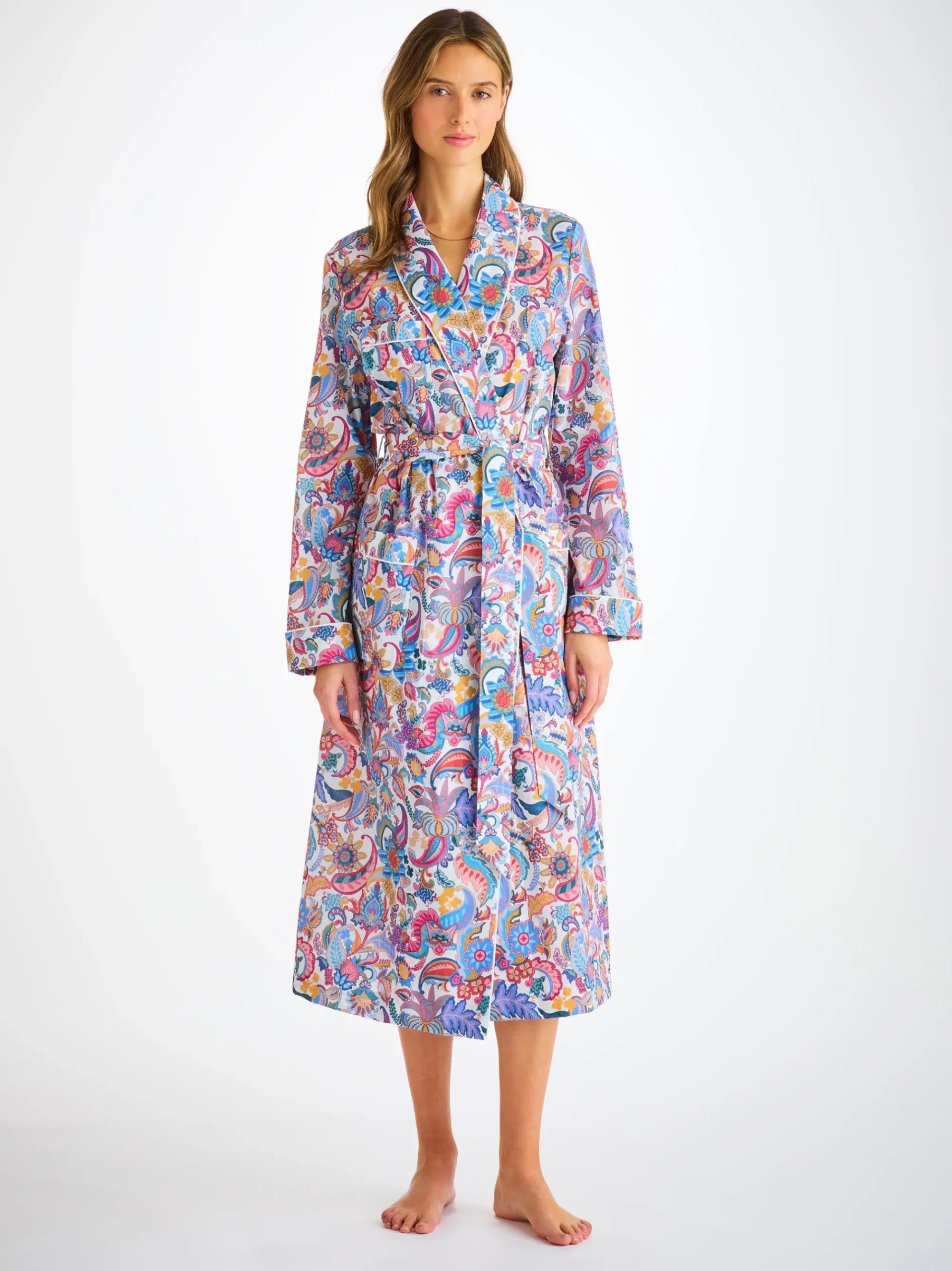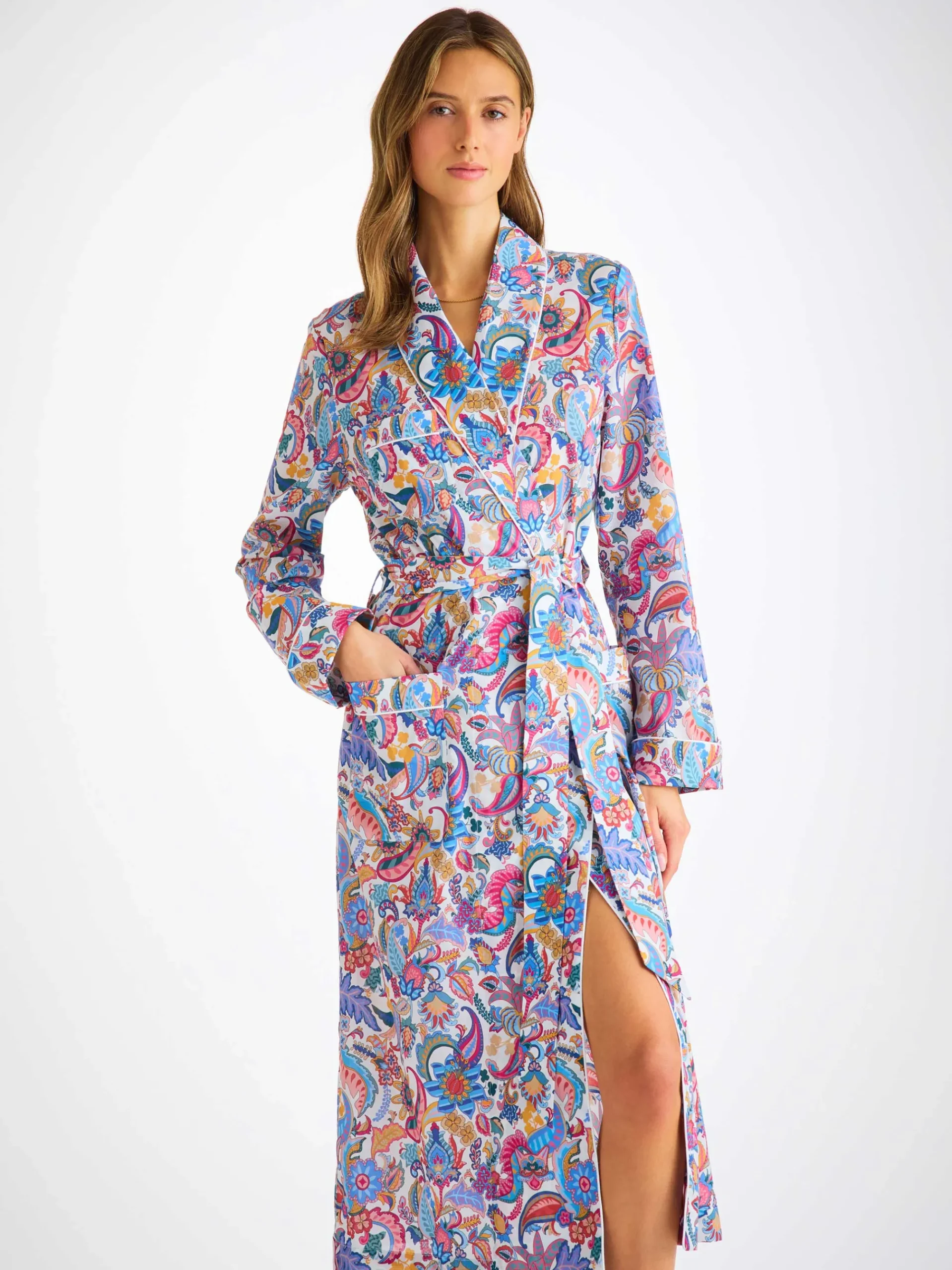 Our cotton batiste has become a firm favourite of our customers, thanks to its breathability, lightweight properties and luxuriously soft feel. With its stylish jungle paisley print, this gown is the perfect choice for breakfast at home or for weekends away with loved ones.