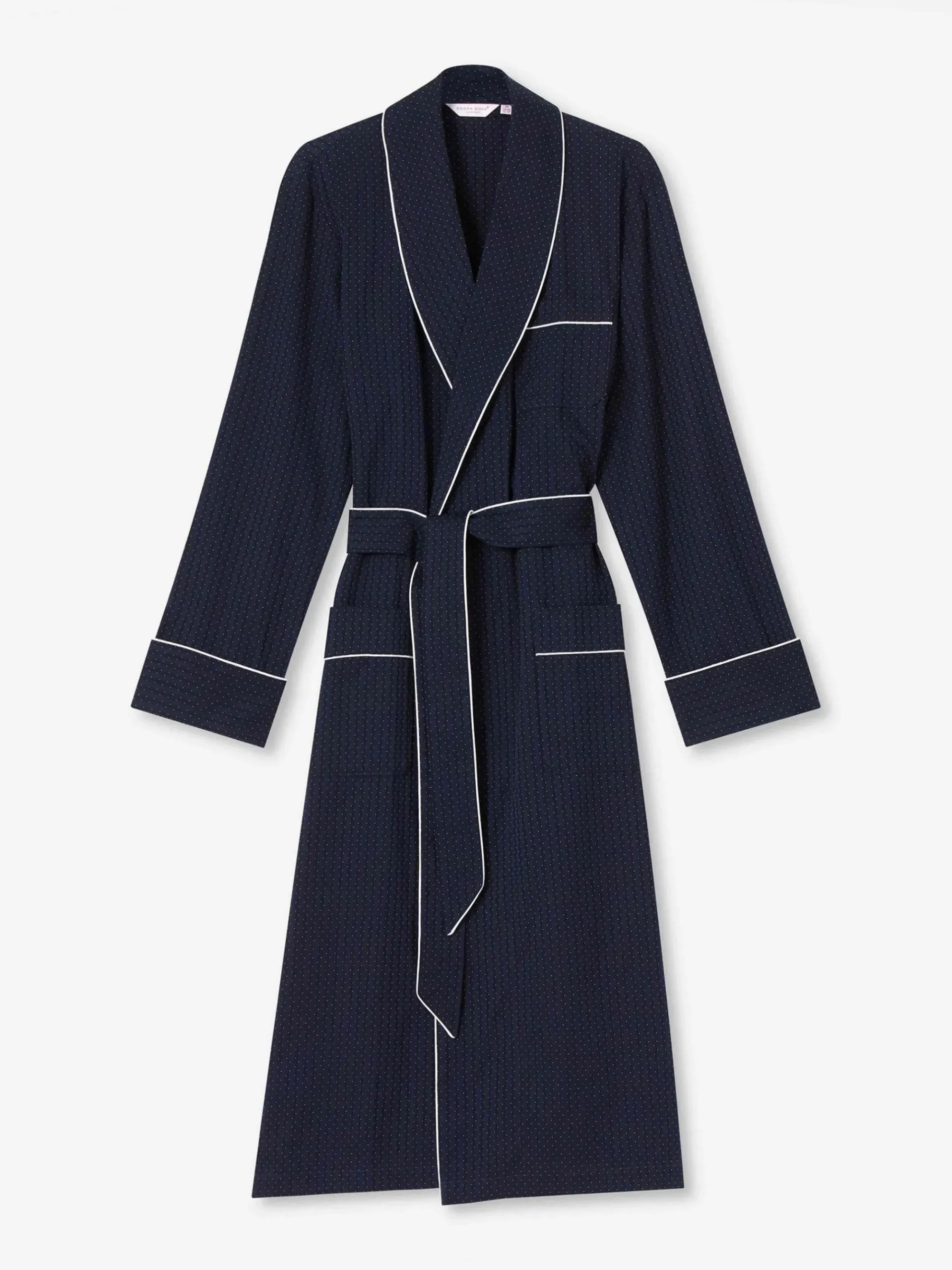 A free time essential, our Royal 40 dressing gown features a classic shawl collar design with a breast pocket and two front patch pockets for practicality while around the house.