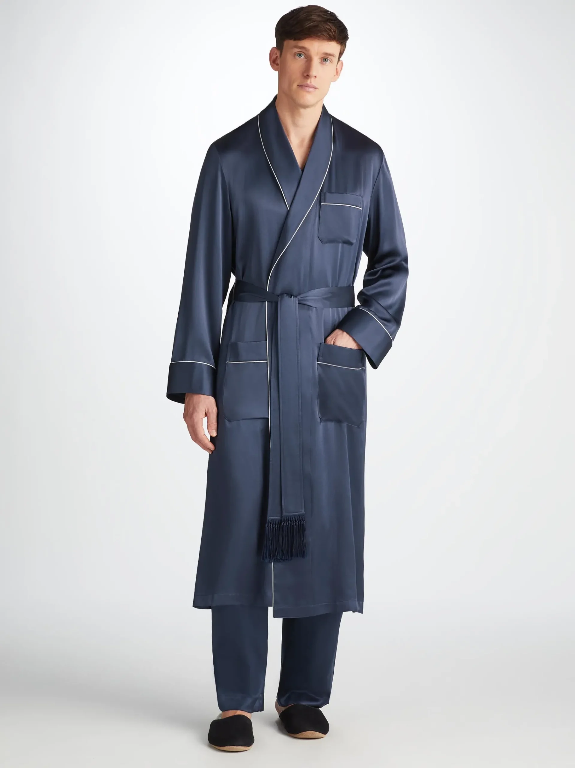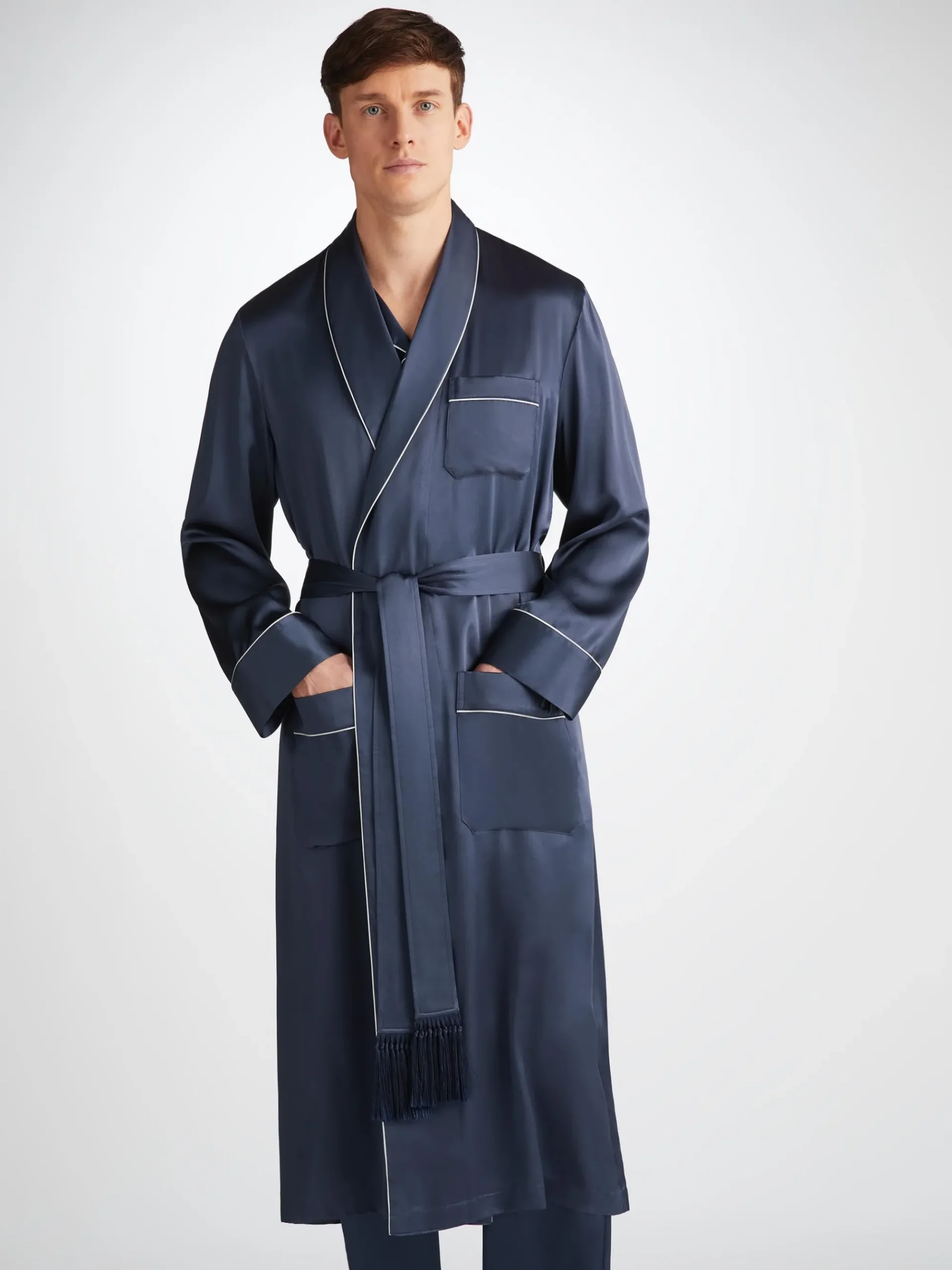 Crafted in our workshop in Cheshire, England, the Bailey navy tasselled belt dressing gown is produced in extremely limited quantities. The result of hours of loving craftwork by our skilled seamstresses, you’re sure to feel like royalty when relaxing at home in this silk robe.