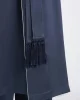 This garment has also been fully piped by hand in a complementary light grey silk piping and finished with a navy tasselled belt for an added touch of luxe.