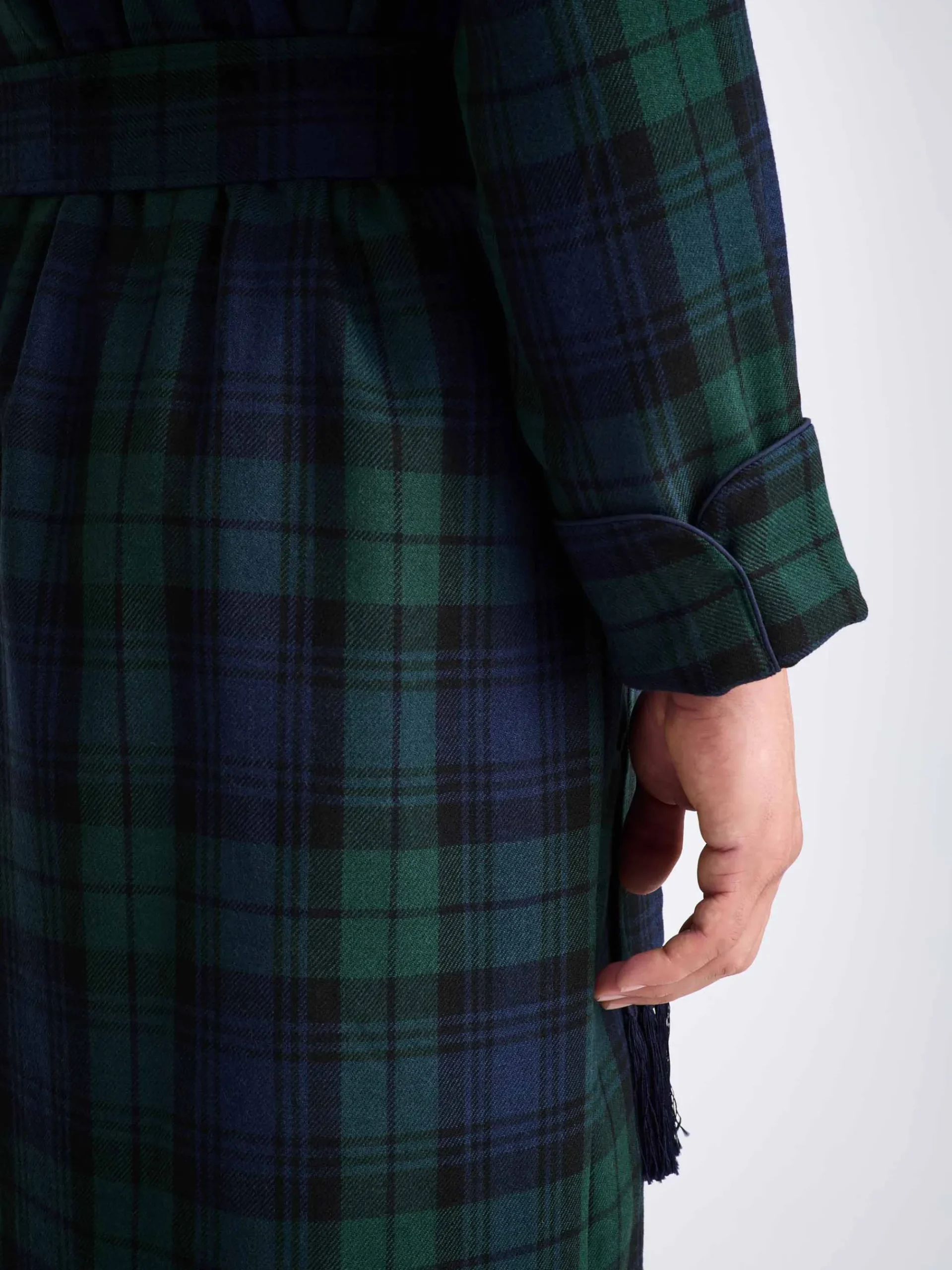 One of our best-selling dressing gowns, the tartan design showcases the colours of the Black Watch of the Royal Regiment of Scotland. Its rich, deep tones make for an elegant and timeless winter gown.