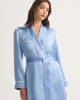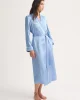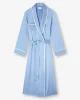The women’s Bailey long dressing gown is crafted from 100% pure silk in a serene cloud blue, offering a smooth satin finish and an elegant drape. Produced in limited quantities at our silk studio in Cheshire, England, each gown is the result of hours of dedicated craftsmanship.