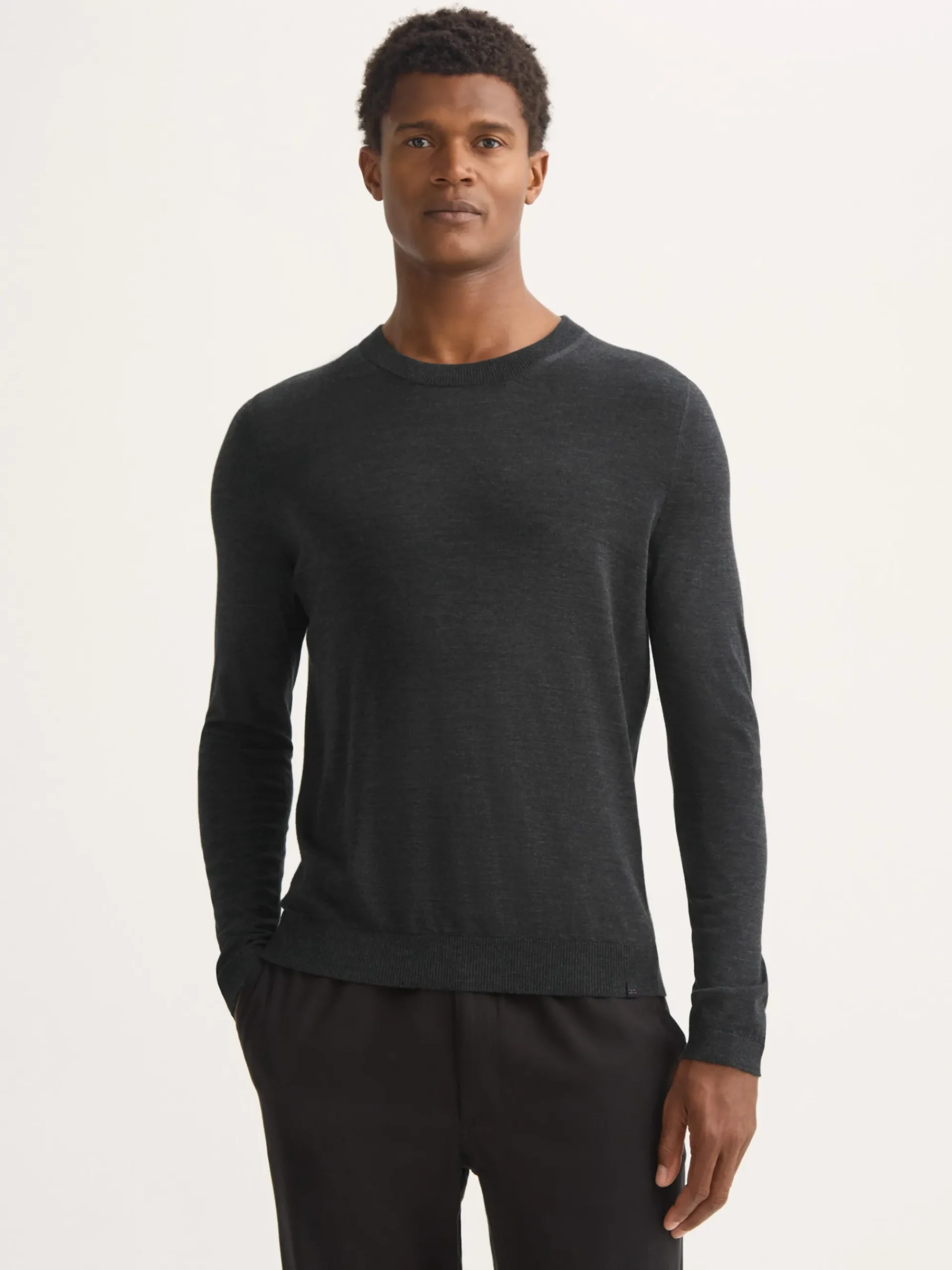 Designed with 100% merino wool, our Orson charcoal sweater has been created with a ribbed neckline and cuffs.